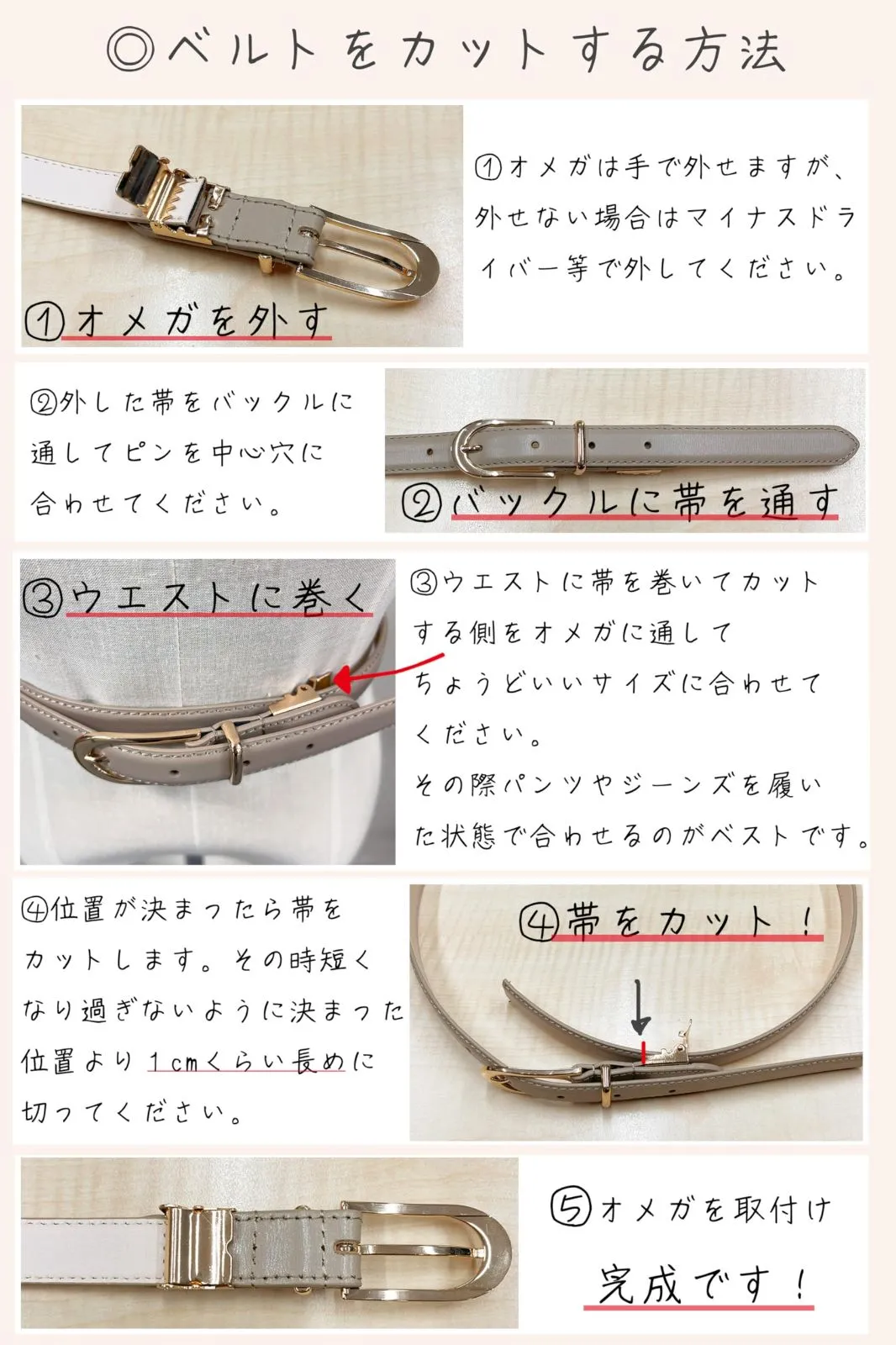 ●素材 表:牛革(スムース) 裏:合成皮革 バックル:ブラック帯にはシルバー、ブラウン・グレージュにはおしゃれなピンクゴールドの2色。