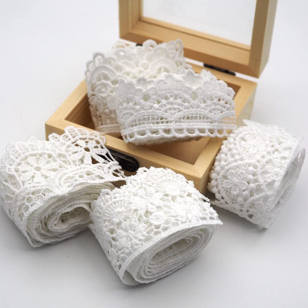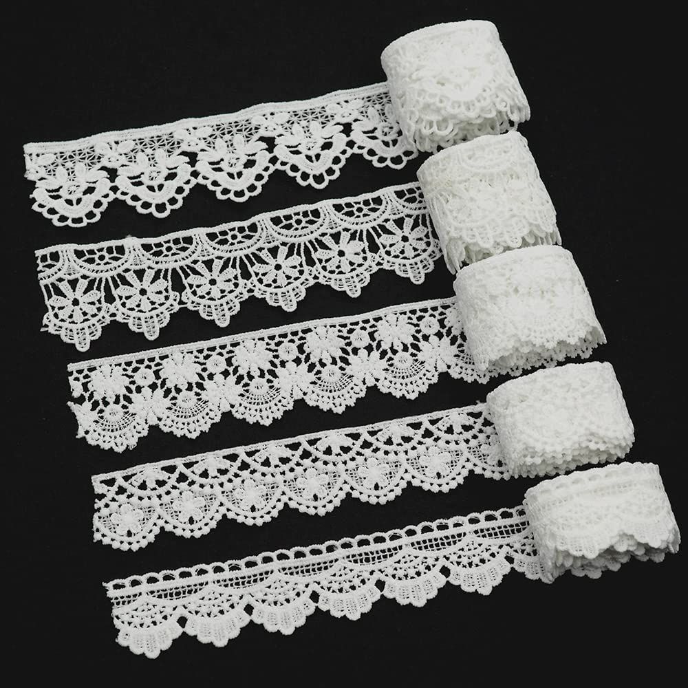 sempiterno 5タイプの流行りのホワイトミニ花柄レース生地 ミルクシルク髪飾り刺繍レース シングル長さ約1m ウェディング糸ホームテキスタイル布地刺繍バーコードDIY補助材料 誕生日 クリスマス ギフト 装飾材料 縫製素材(5タイプアソート)