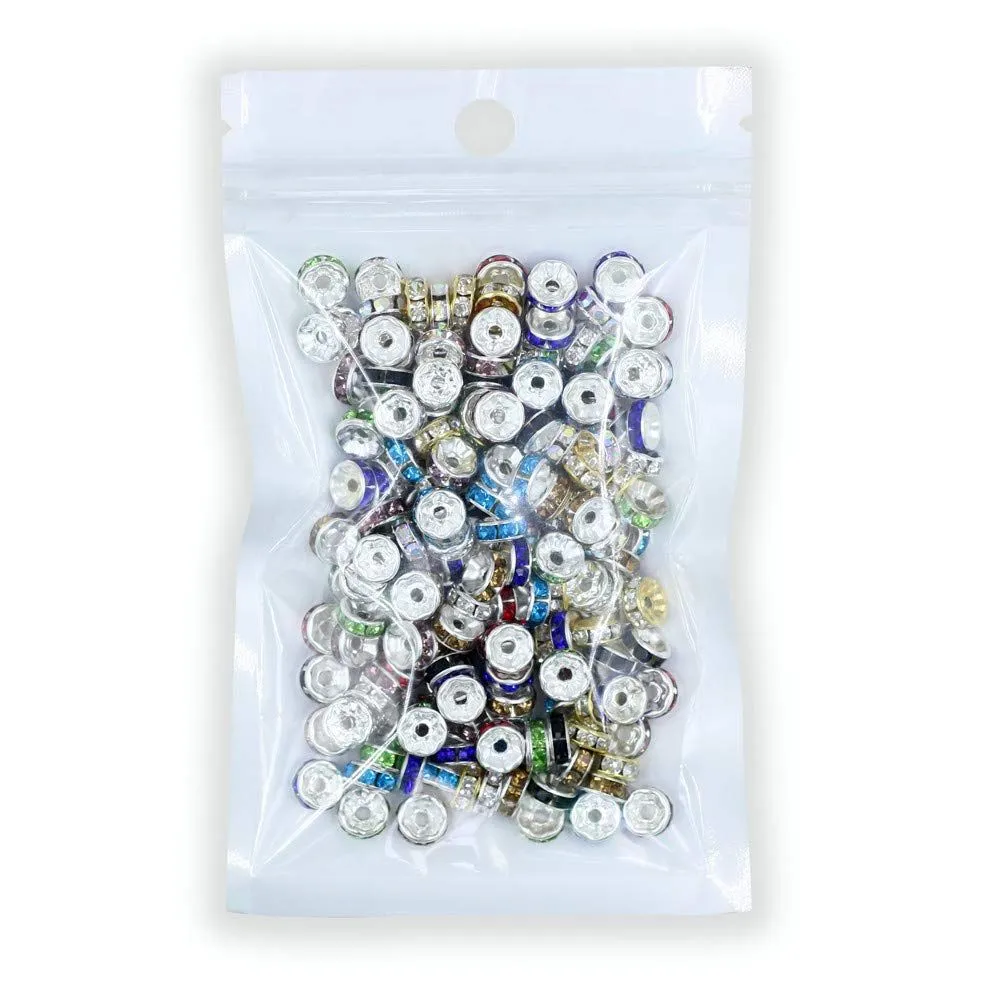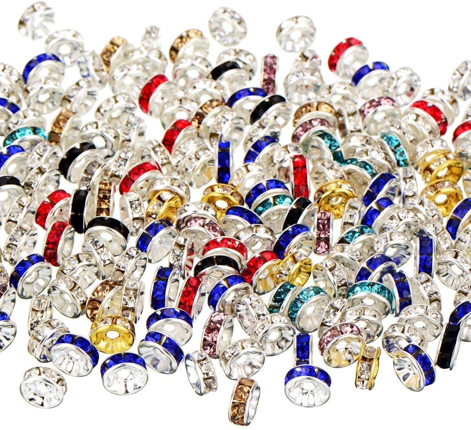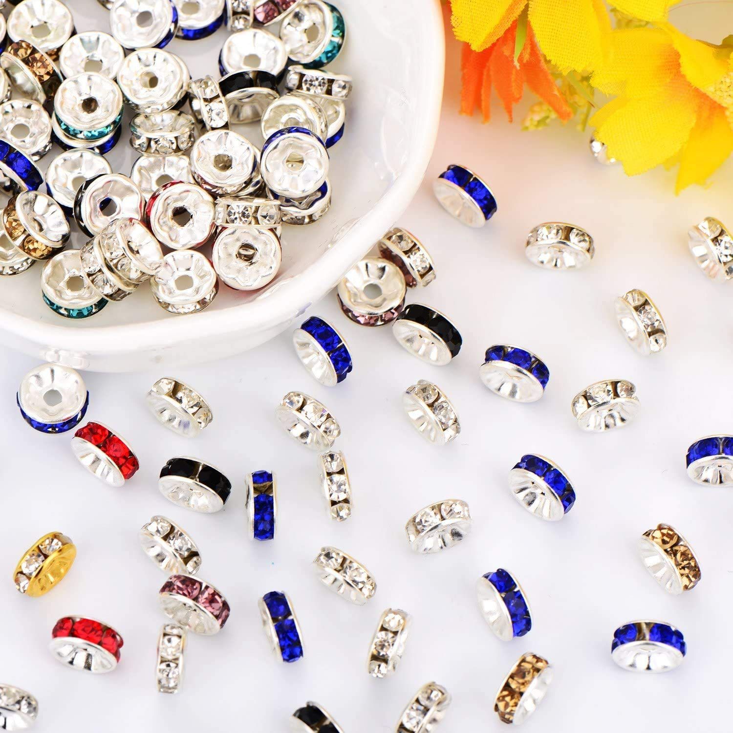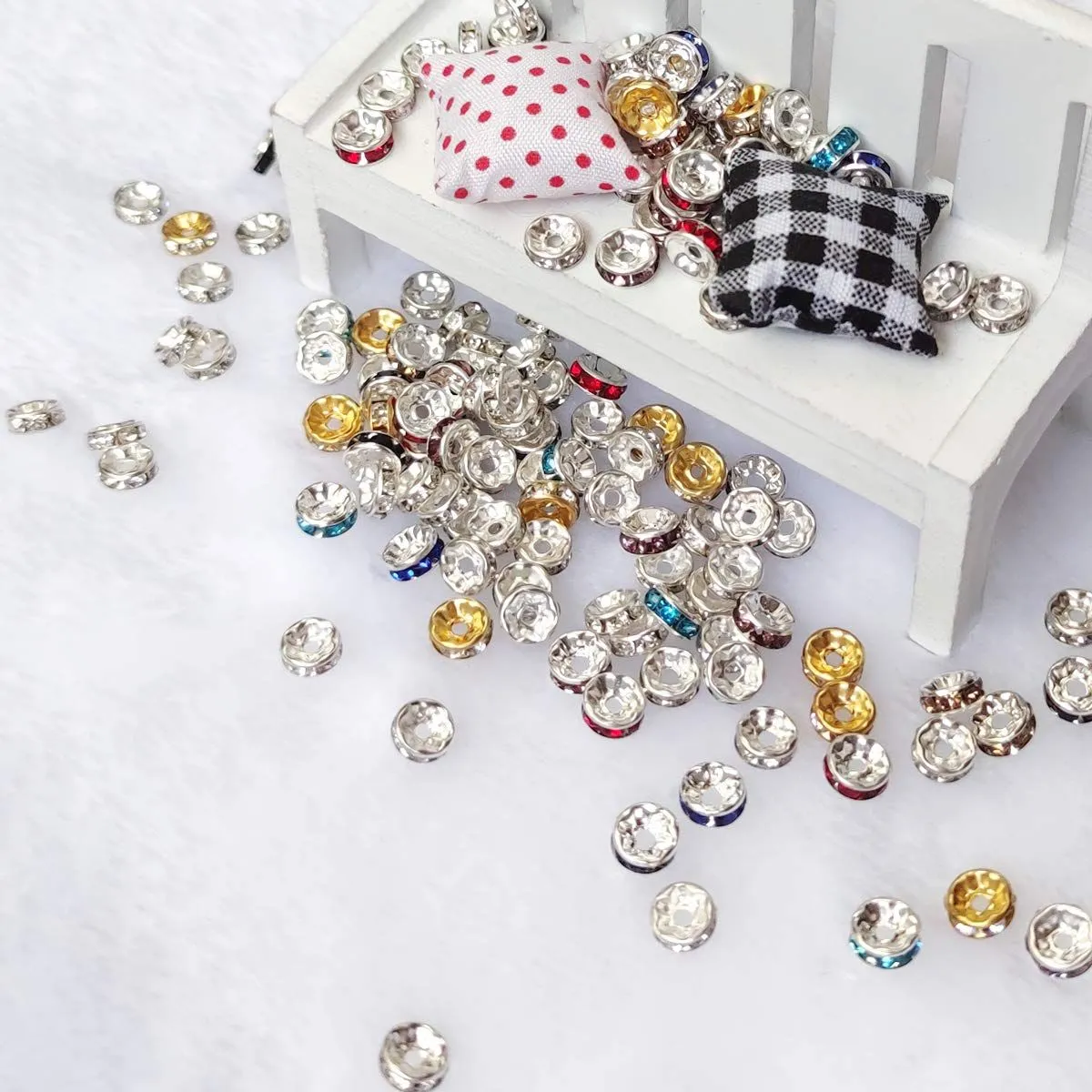 200個 ロンデル ビーズ ラインストーン キラキラ ジュエリー用 平型 スペーサービーズ ブレスレット 手作り用 アクセサリーパーツ
