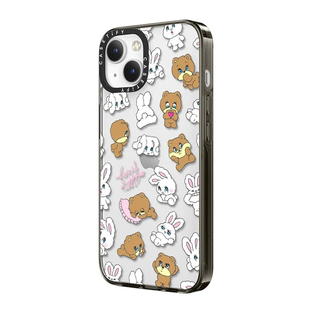 CASETiFY コンパクト iPhone 15 ケース [MIL規格準拠 (2x MIL-STD-810G) / 1.2mからの落下テストをクリア] - Bunny-Bear Mix - クリア ブラック