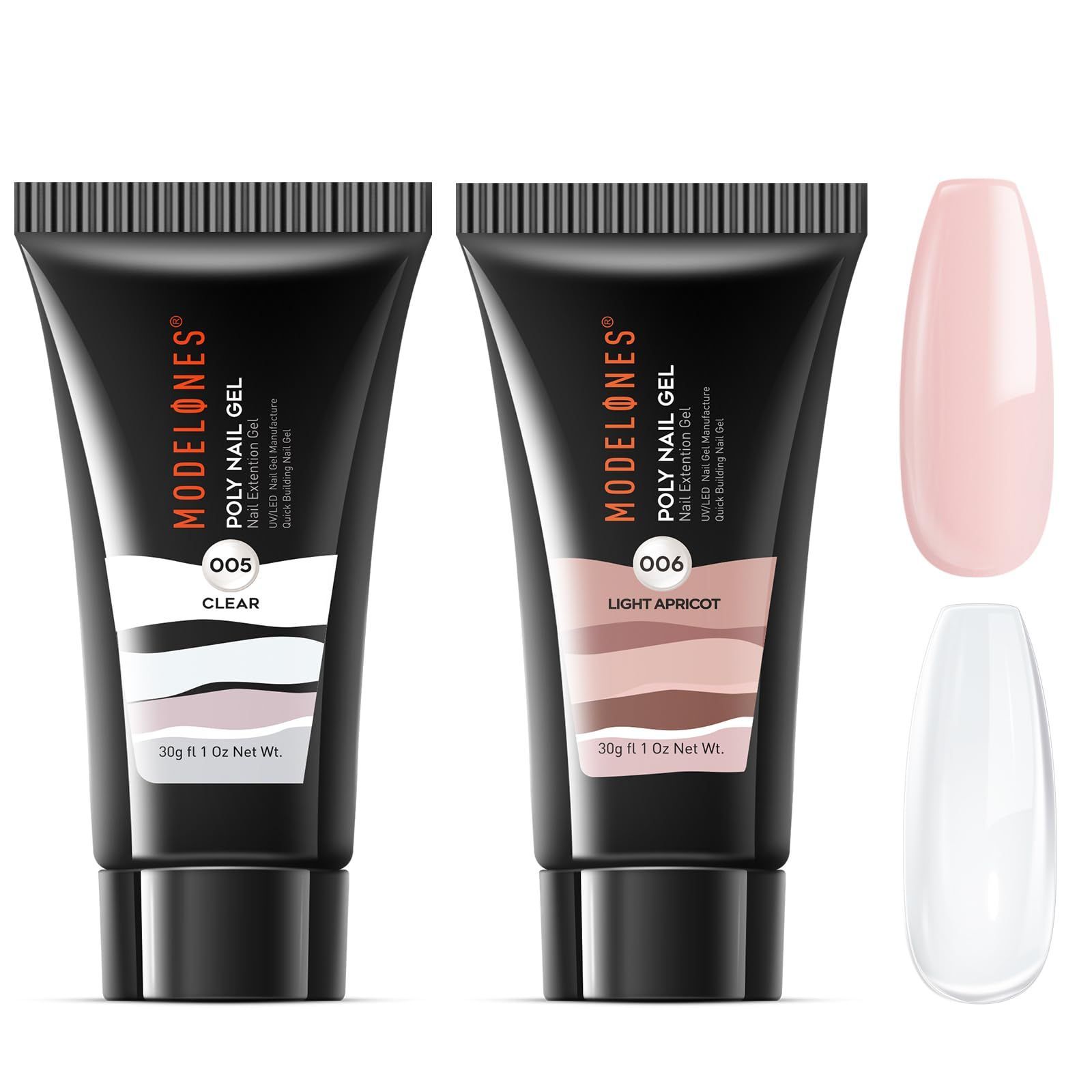 modelones ジェルネイル ポリネイルジェル カラージェル 長さだし 60g エクステンションジェル ジェル ポリッシュ二つ色セット (ヌード30g+クリア30g)