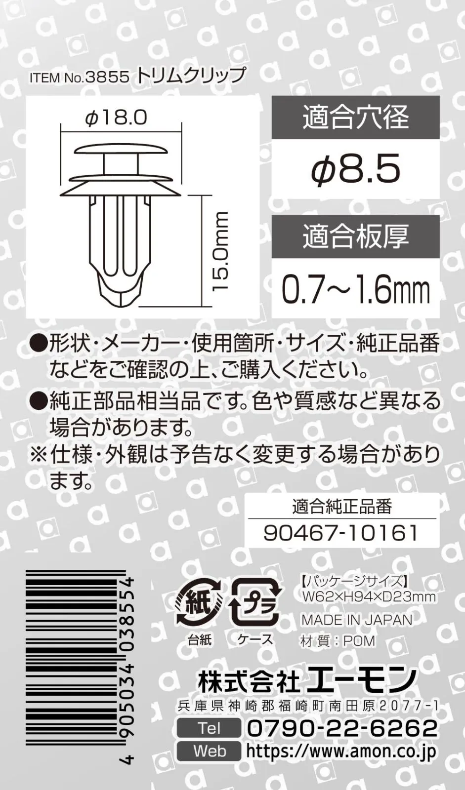 2024年4月1日より、社名が「エーモン工業株式会社」から「株式会社エーモン」へ変更となりました。