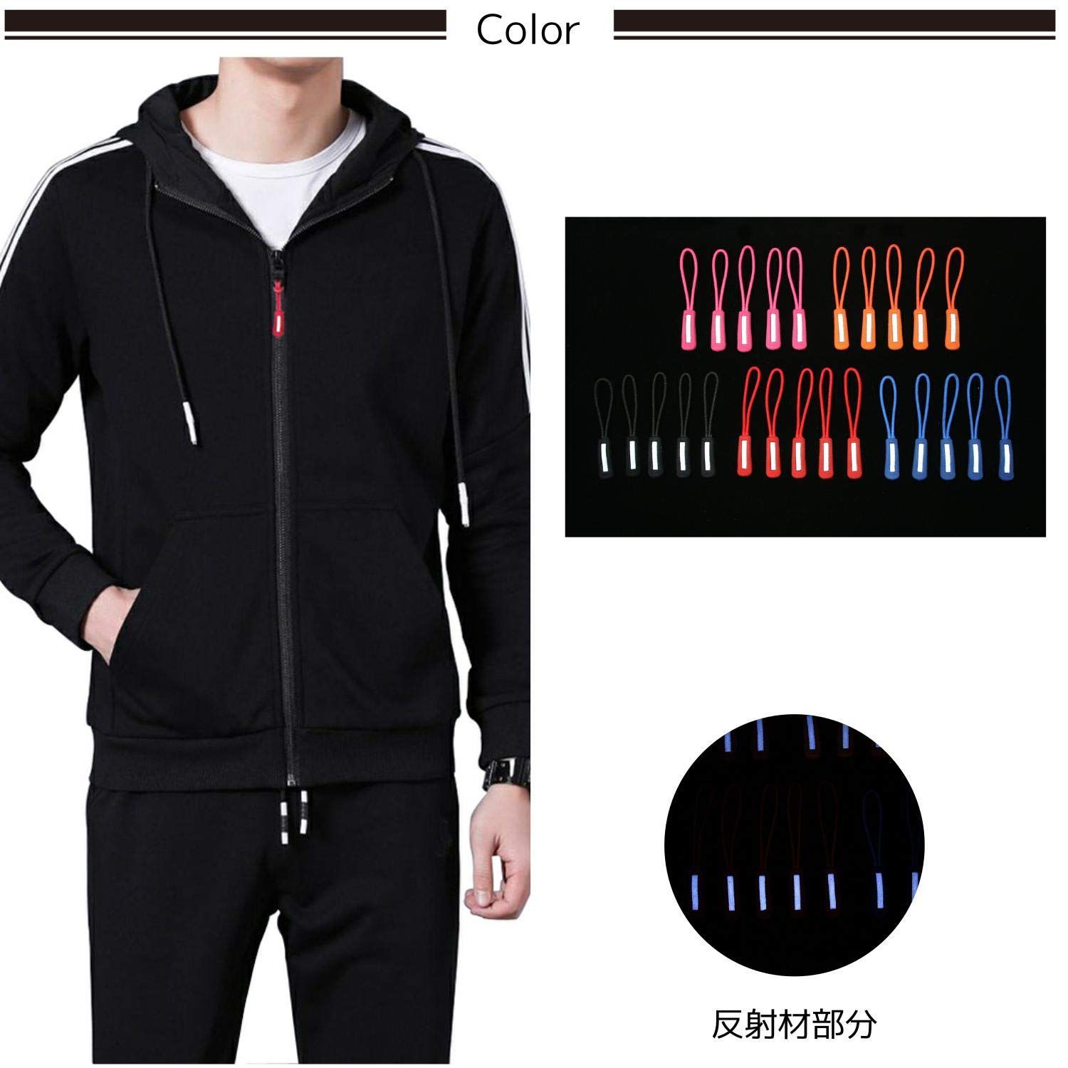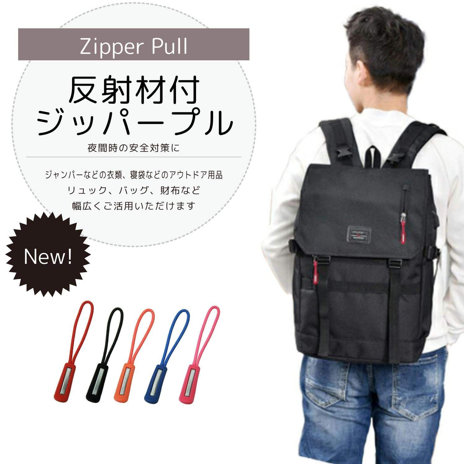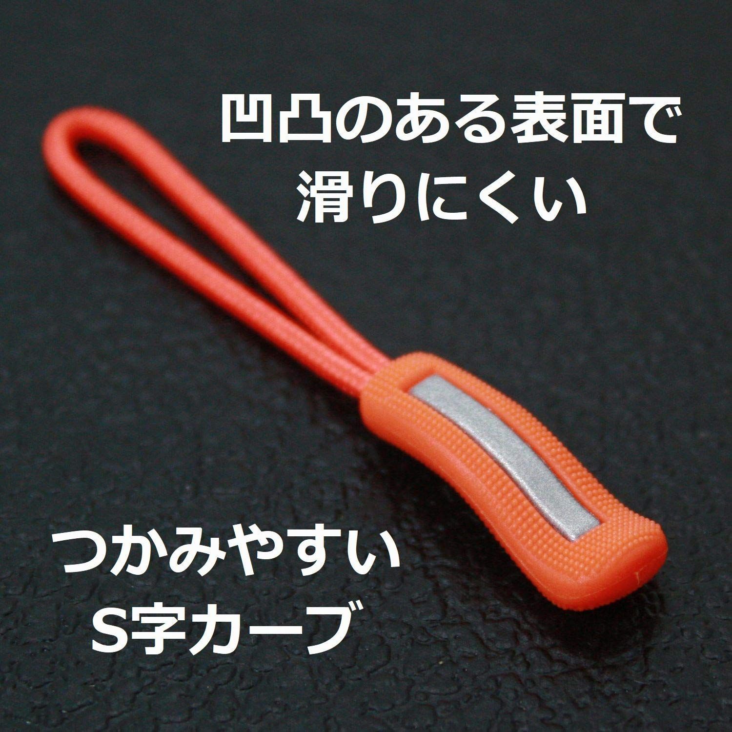 ジッパープル 反射材付き ファスナー チャック 楽々 開閉 取り付け簡単 つかみやすい ノンスリップ ジッパータブ プルコード 5カラー 各10本セット (オレンジ)