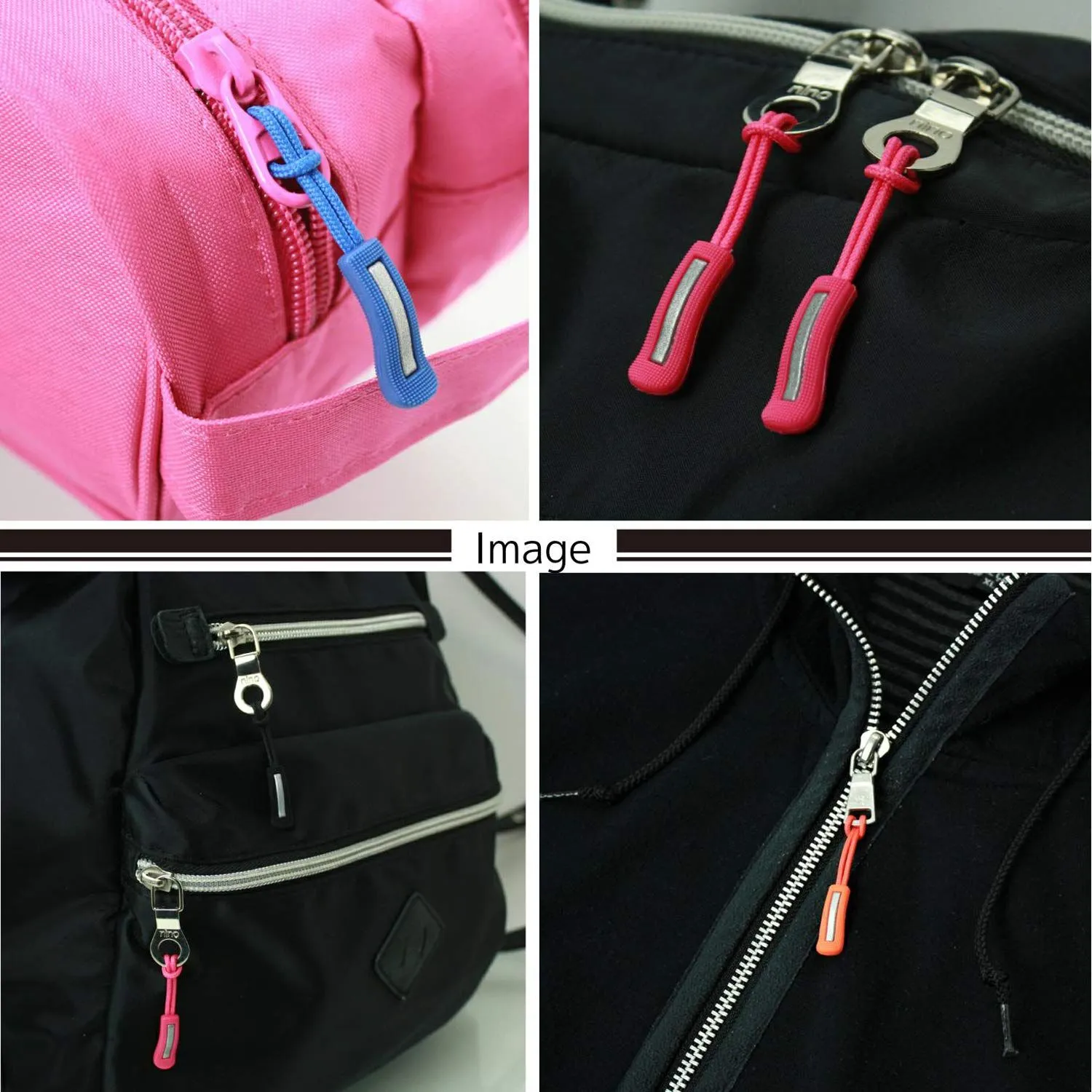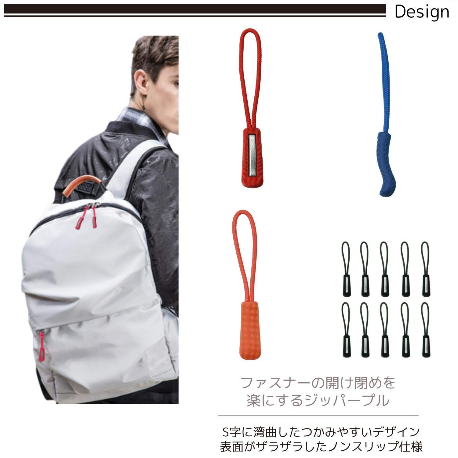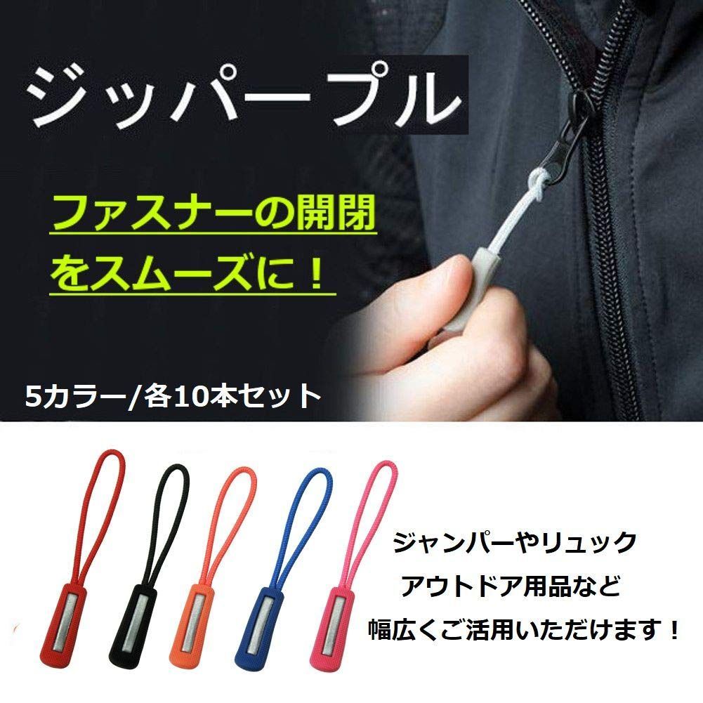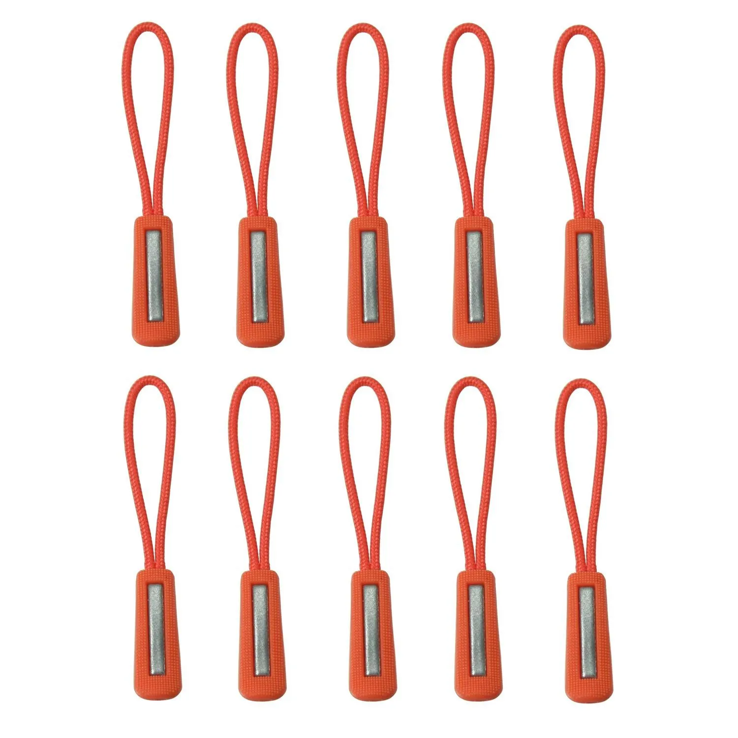 ジッパープル 反射材付き ファスナー チャック 楽々 開閉 取り付け簡単 つかみやすい ノンスリップ ジッパータブ プルコード 5カラー 各10本セット (オレンジ)