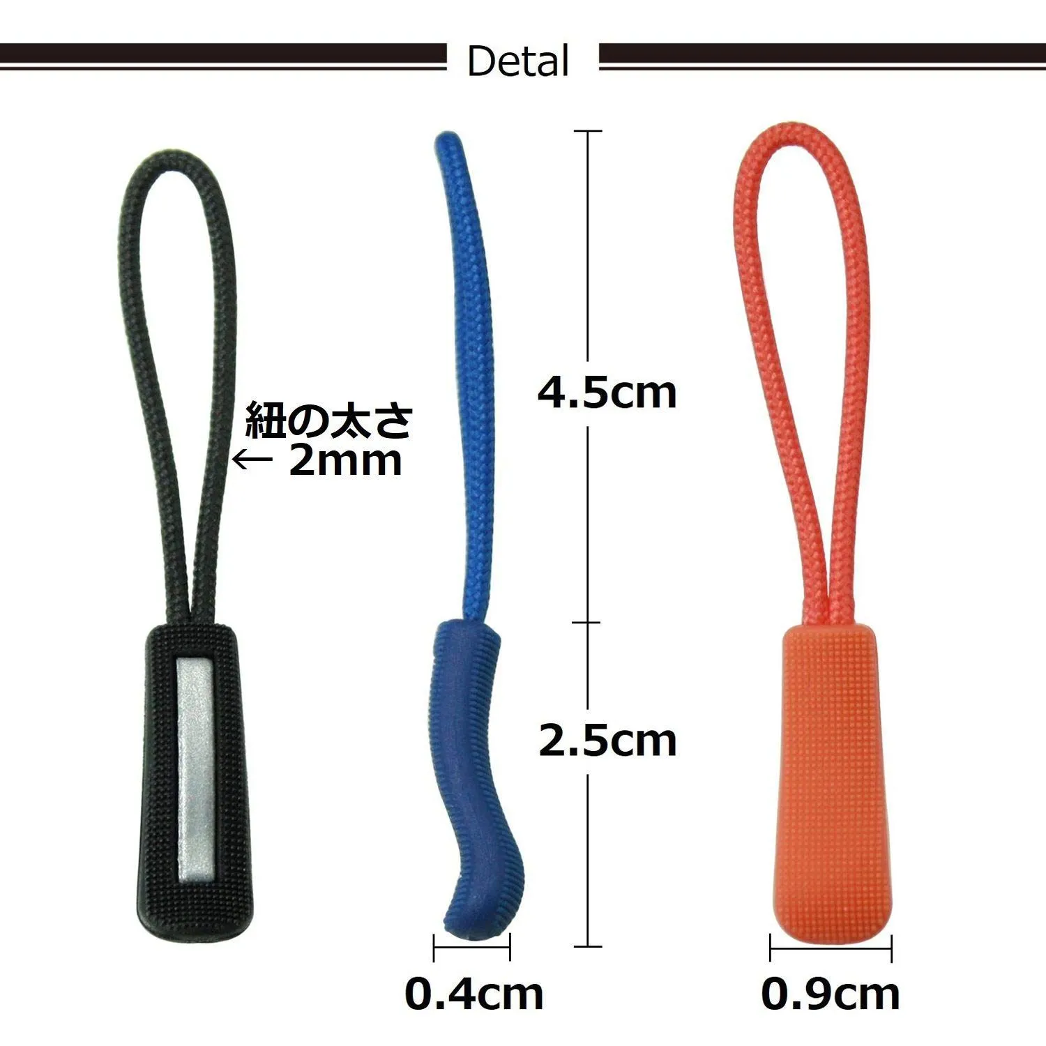 ジッパー端のリングに結ぶだけの取り付け簡単で、ほとんどのファスナーに付けられます。壊れてしまったタブの修理やつかみにくいタブに取り付ければ、使い勝手のよいチャックにリニューアルできます。