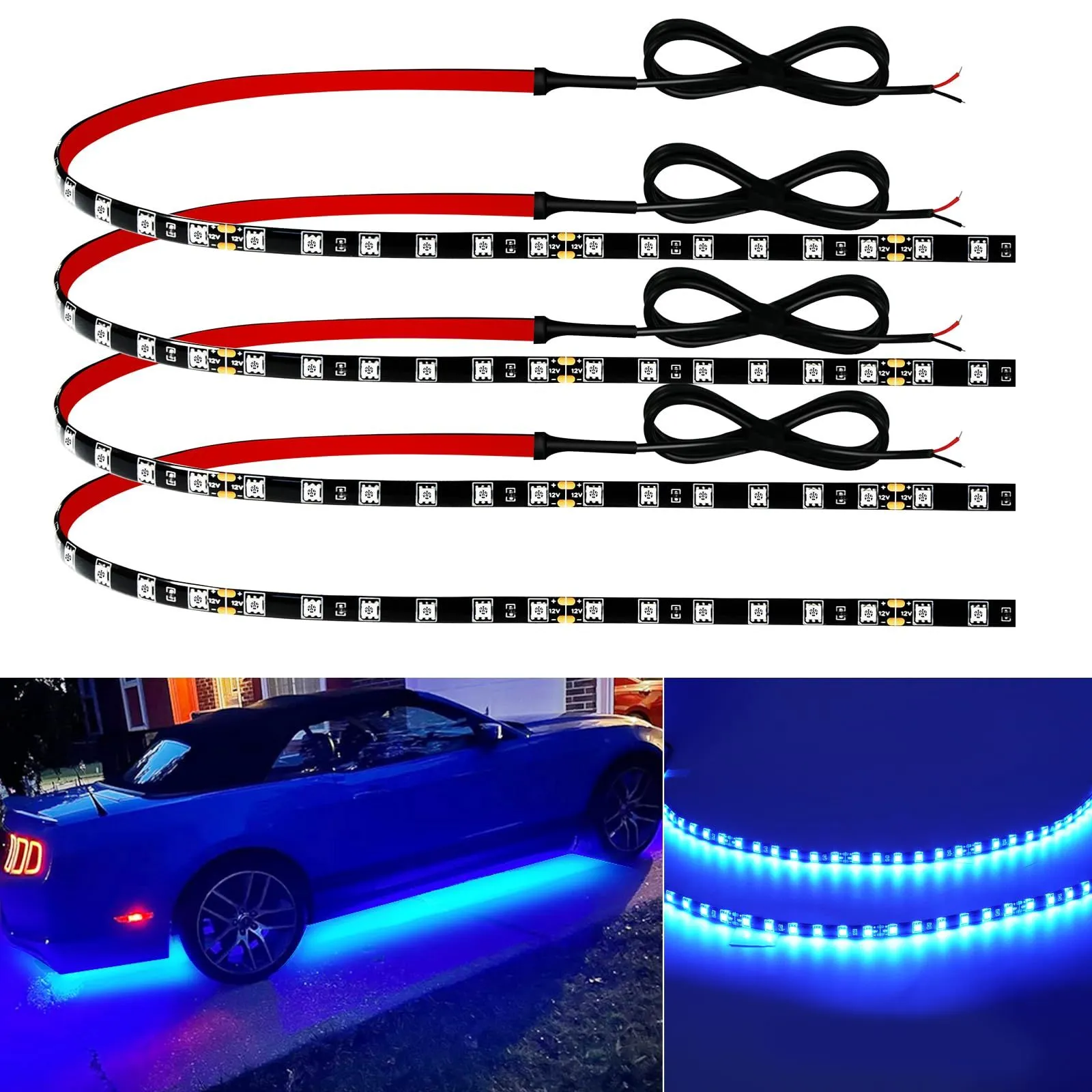 車内用 LEDテープライト接続可能 60CM フットライト足下照明 バイク テールランプゴルフカートボート ledテープライト車用 ブルー 高輝度 防水 切断可 4本