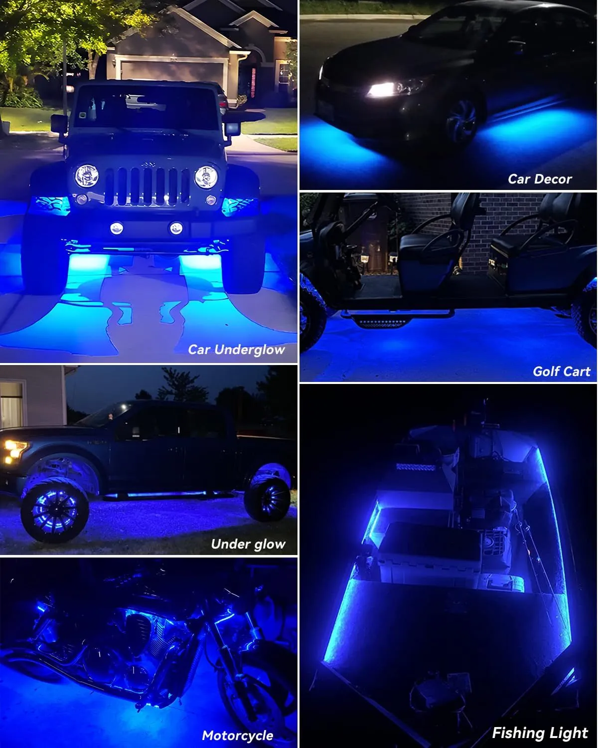 【広範な用途】--- LEDテープライトは、ボートの内部照明、ゴルフカートのアンダーグロー、オートバイ、自動車、トラック、カーゴトレーラー、キャンピングバンの足元照明、フットウェルライト、フロントグリルの内外装、ボートデッキライト、礼儀正しい内部照明、釣りの夜の雰囲気照明など、広く使用されています。また、家庭、キッチン、部屋、ベッドルーム、キャビネット、バー、パーティーの装飾的なアクセント照明にも使用されます。