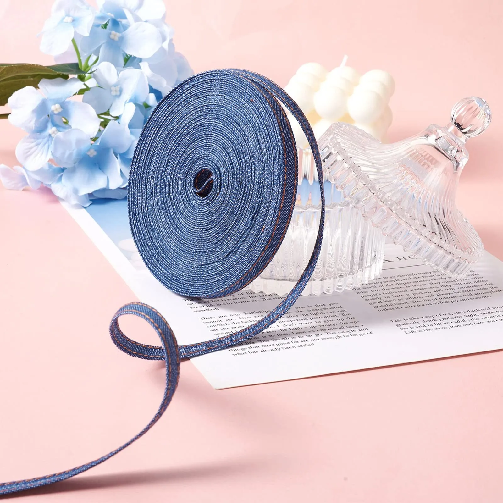 1巻入り 幅10mm マリンブルー ステッチデニムリボン 布生地 ジーンズ トリミング 手芸 縫製用 アクセサリーパーツ DIY ハンドメイド ヘアピン ヘアアクセサリー 服飾り パッチワーク 手作り素材 クラフト用品 約10m/ロール