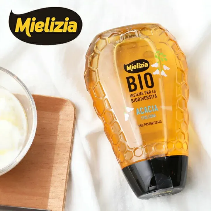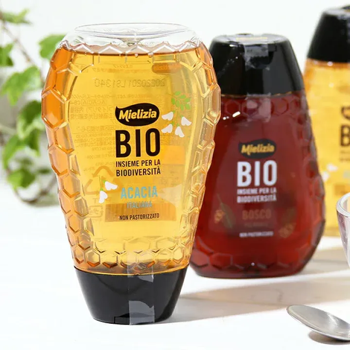イタリアで採蜜されたアカシアのハチミツ。なめらかな質感で、やさしく上品な味わい。プレーンヨーグルトやフレッシュチーズと一緒に。製菓材料やドレッシングにもおすすめ。 逆さまに立てて片手で簡単に絞り出せるスクイーザーボトル。