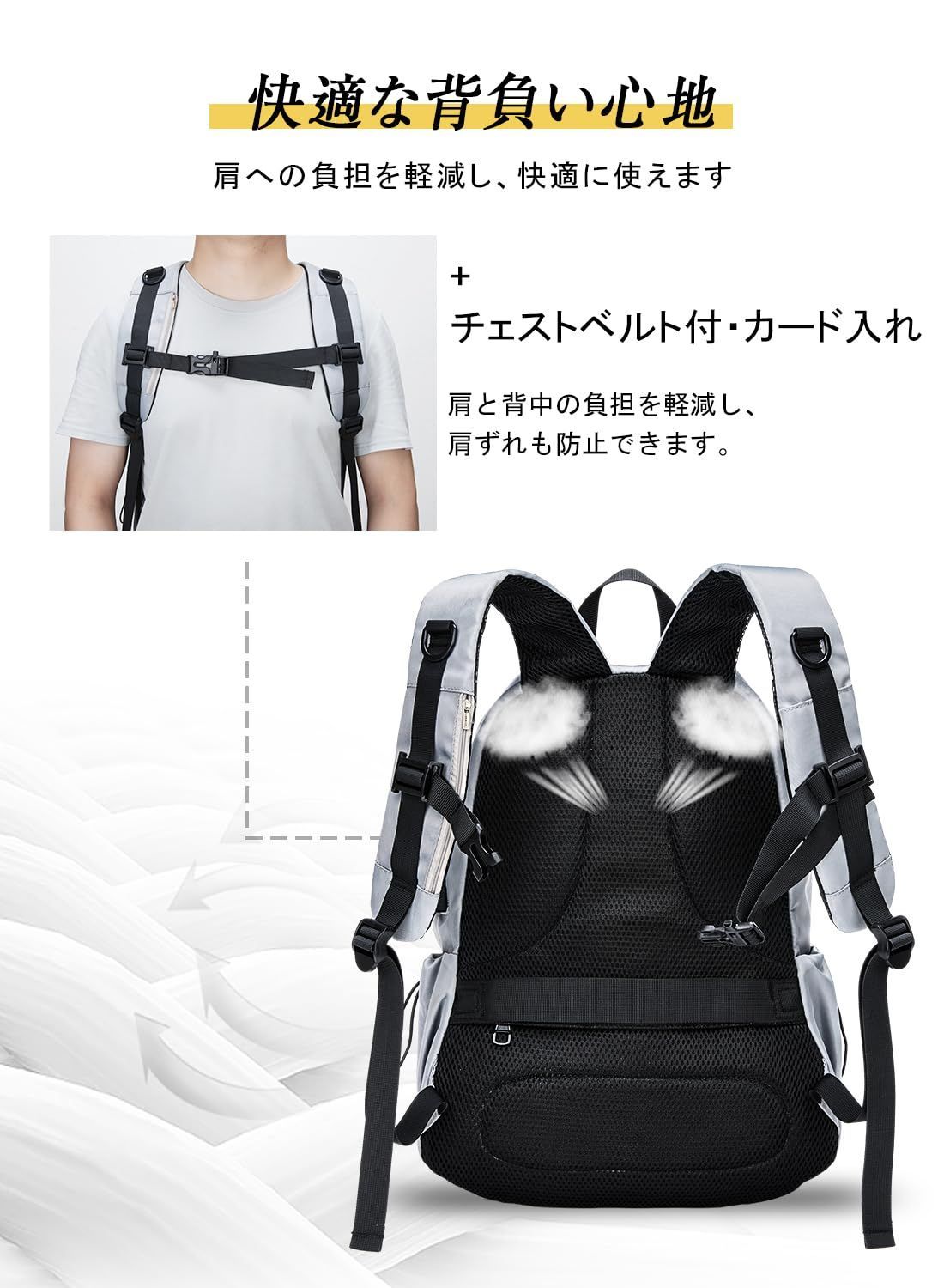 【通気性抜群】ショルダーベルト裏面は通気性に優れたメッシュクッションで仕上げ、ムレや摩擦を軽減。長時間着用するとき軽くて快適な背負い心地。さらに、チェストベルトも付くので、肩への負担を大幅に軽減して肩ずれを防止してくれます。長時間のご使用でも肩も痛くなりにくいのがポイントです