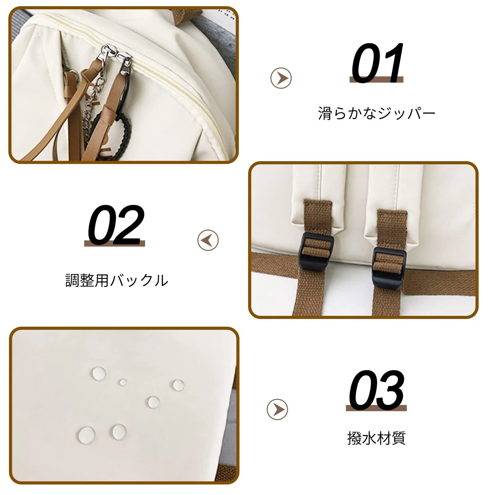 【優れた機能性】★盗難防止:背部にはファスナーポケットがついて、財布、スマホなどの貴重品を入れても安心です。★落下防止:サイドポケットには固定されたベルトがありますので、水筒や折りたたみ傘などを入れる際に落ちる心配はありません。
