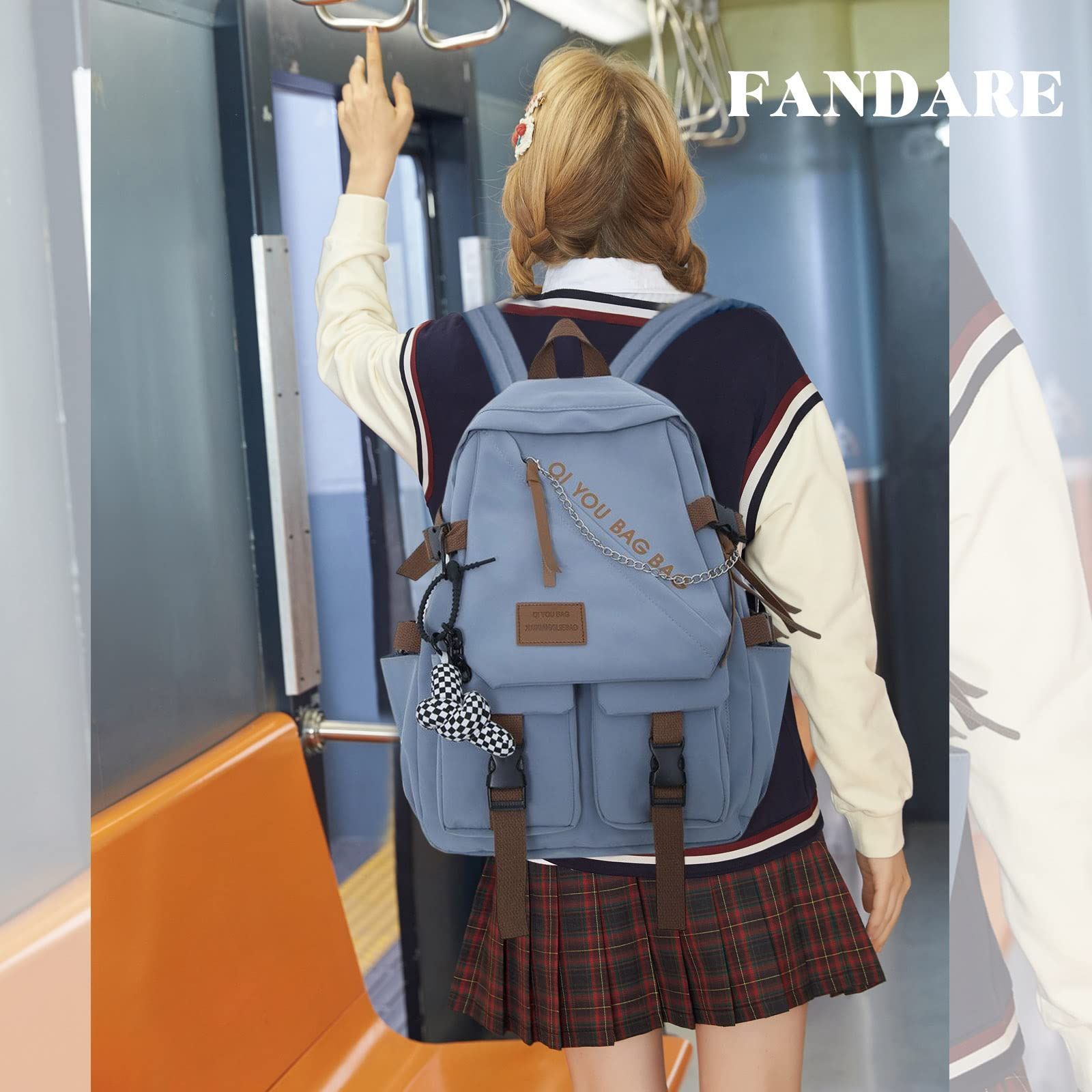 [FANDARE] リュック レディース 韓国 通学 15.6インチPC収納 防水 可愛い リュックサック 女子 高校生 人気 軽量 バックパック 大学生 おしゃれ 背中ポケット付き カジュアル 旅行 遠足 ナイロン