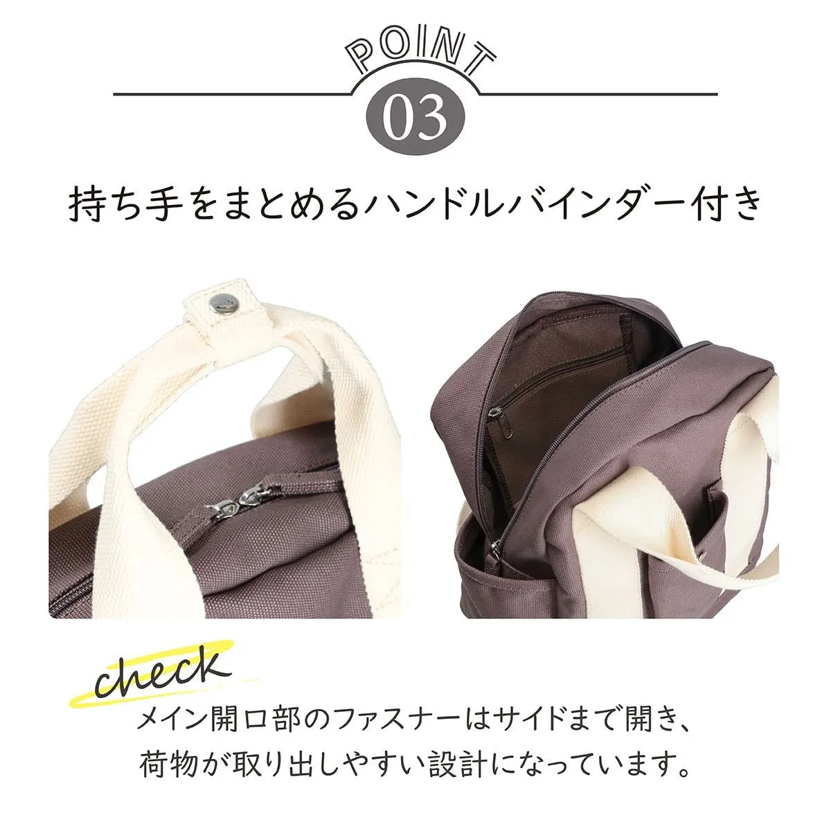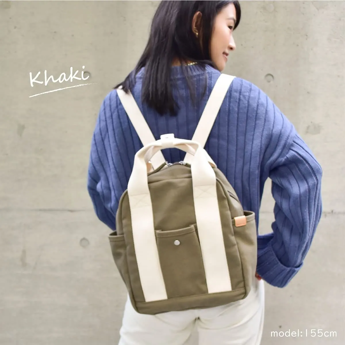 デイリー使いに最適な小さめリュック。キャンバス素材でカジュアルな印象で軽やかにお持ちいただけます。両サイドポケットがついており、リュックをおろさず小物を出し入れできて便利です。