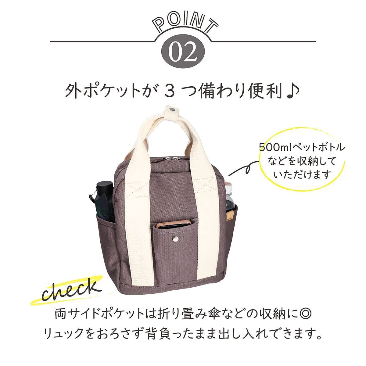 デイリー使いに最適な小さめリュック。キャンバス素材でカジュアルな印象で軽やかにお持ちいただけます。両サイドポケットがついており、リュックをおろさず小物を出し入れできて便利です。