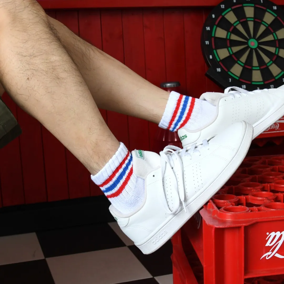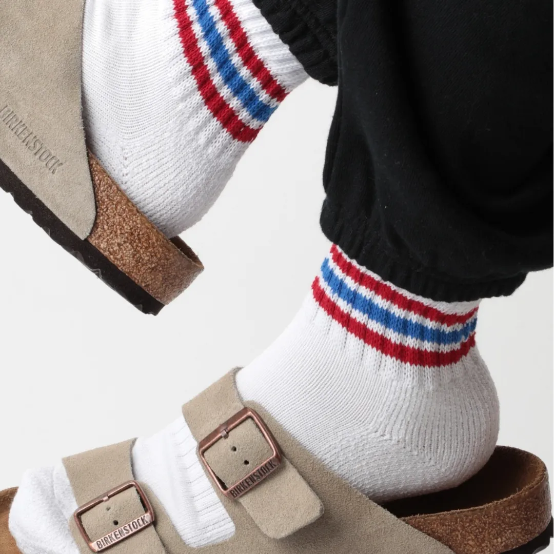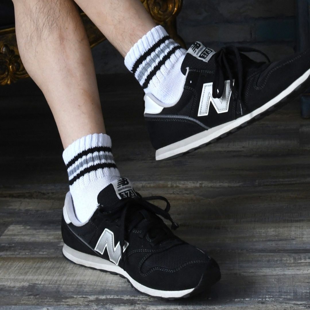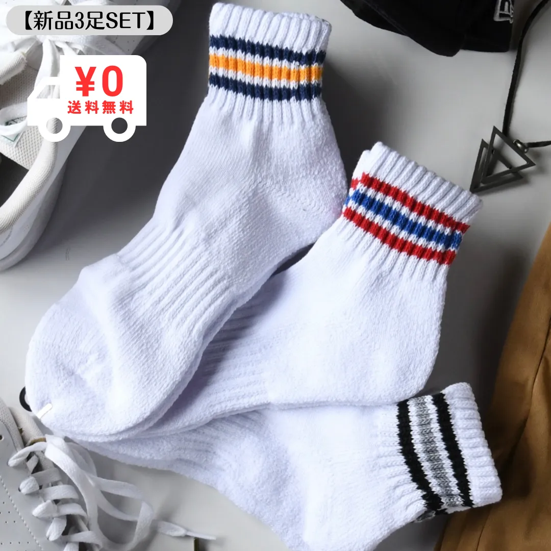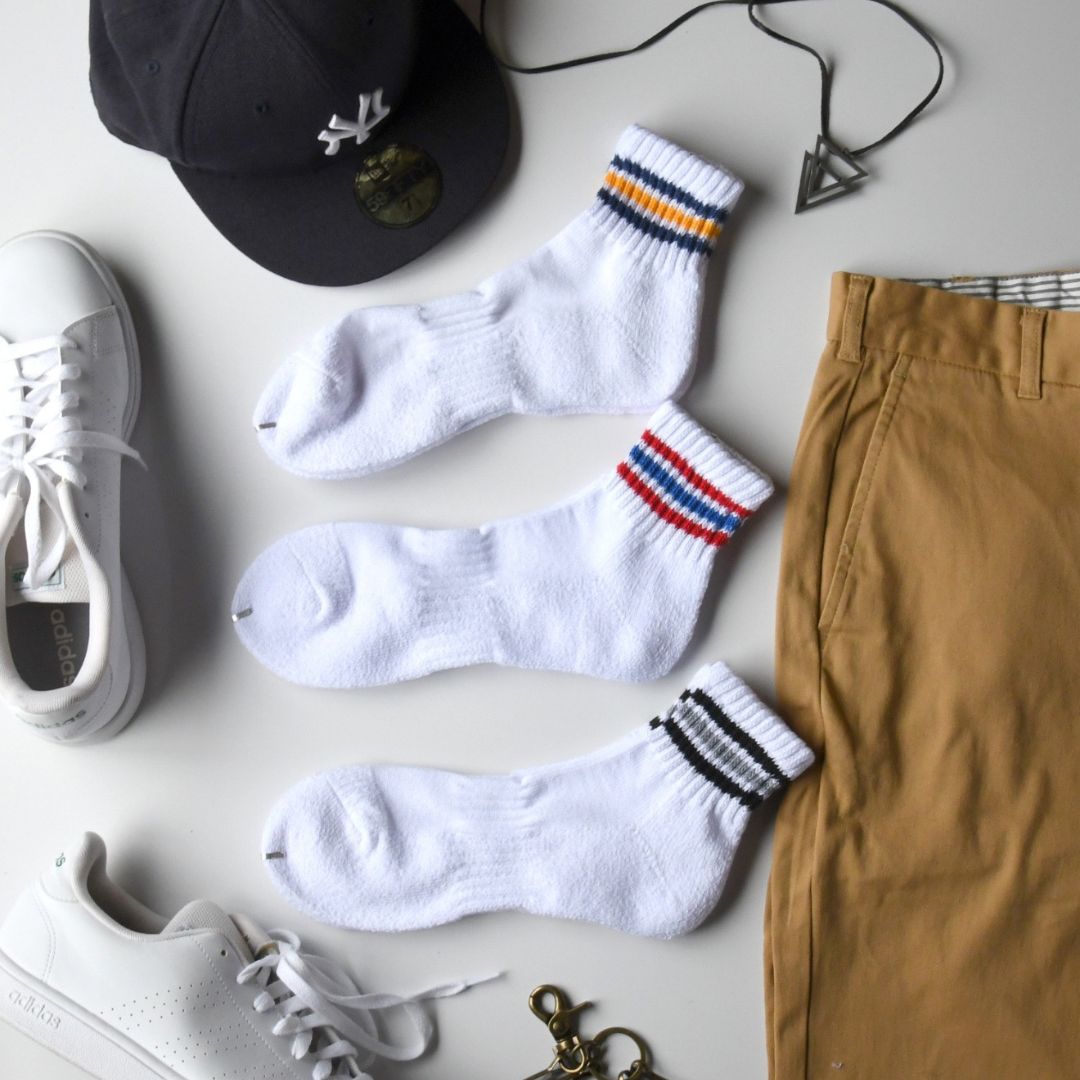 どんなスタイルにも合わせやすいホワイト×ラインのメンズソックス3足セット!