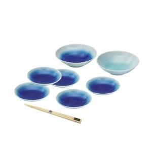 5.0鉢φ168×48mm×2・3.8皿φ130×26mm×5・箸225mm 鉢・皿:磁器・箸:天然木 箱サイズ:180×185×100mm