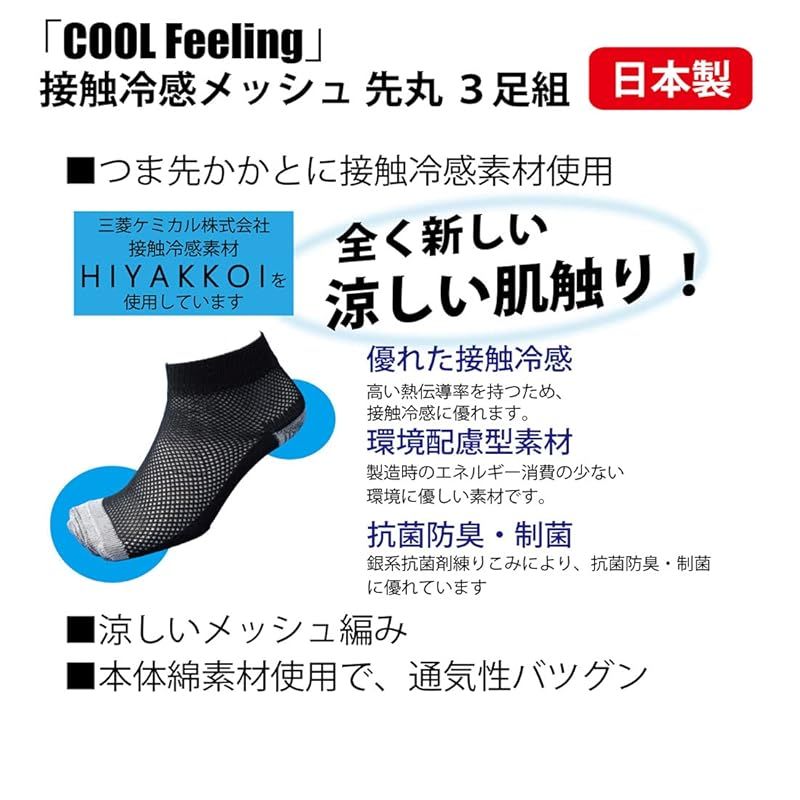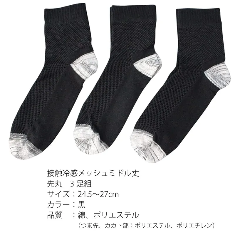 【新品】 [ハヤシ] (CF713) 軍足 靴下 接触冷感 消臭効果抗菌 先丸 ミドル丈 夏用 メッシュ 黒 3足組 メンズソックス 24.5?27cm ソックス