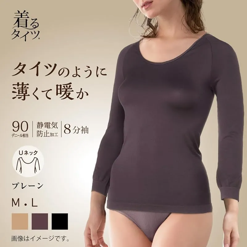 【雑誌LDK25年1月号であったかインナーBestbuy of the year 受賞】 8分袖あったかインナー Uネック 48763NS