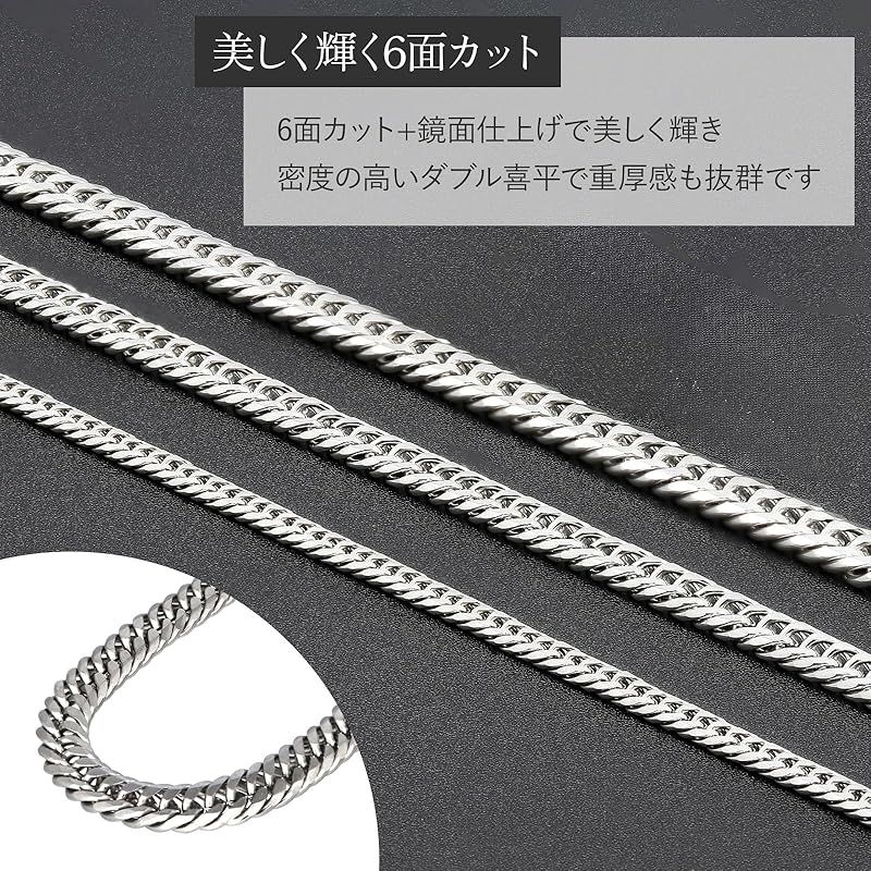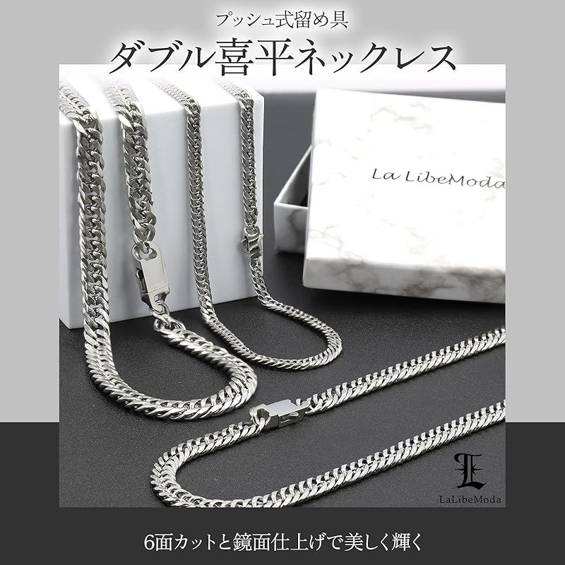 【新品】 [La LibeModa] ステンレス ダブル喜平 ネックレス 6面カット 鏡面仕上げ メンズ アレルギー対応 プッシュ式バックル キヘイ (50, 幅6mm 鏡面仕上げ有り)