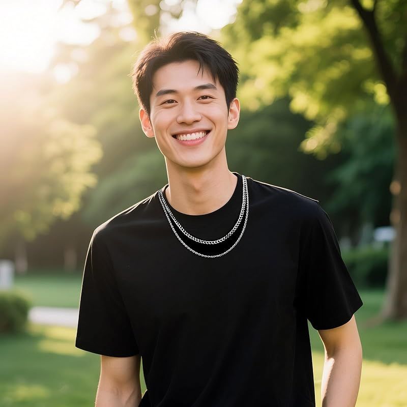 【ダブルチェーンデザイン】金属アレルギー対応ネックレスは、流行のダブルチェーンデザインを採用し、チェーンは組み合わせて身につけることも分解して組み合わせることもできます。シンプルで魅力を失わない、男女兼用のファッションアイテムです。