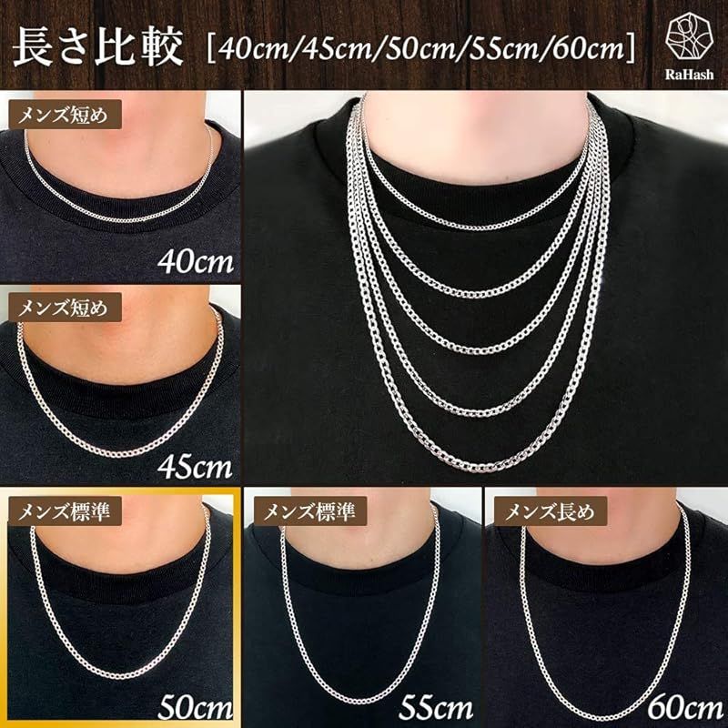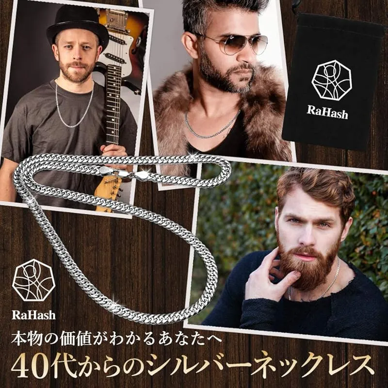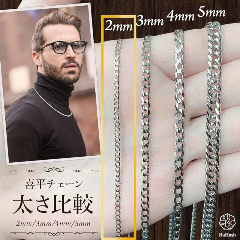 【新品】 [RaHash] ネックレス チェーン メンズ 喜平 シルバー 925 ブランド [ 銀 6面カット 幅2mm ] [ 50cm ]