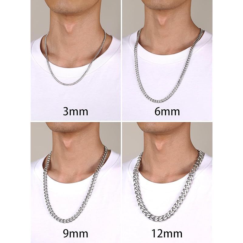 【色も!太さも!長さも選べる!】3mm、6mm、9mm、12mmの4太さ、シルバー、ゴールド、ブラックの3色、46cm、51cm、56cm、61cm、66cm、71cm、76cmの7長さ、全84種類を揃えました!