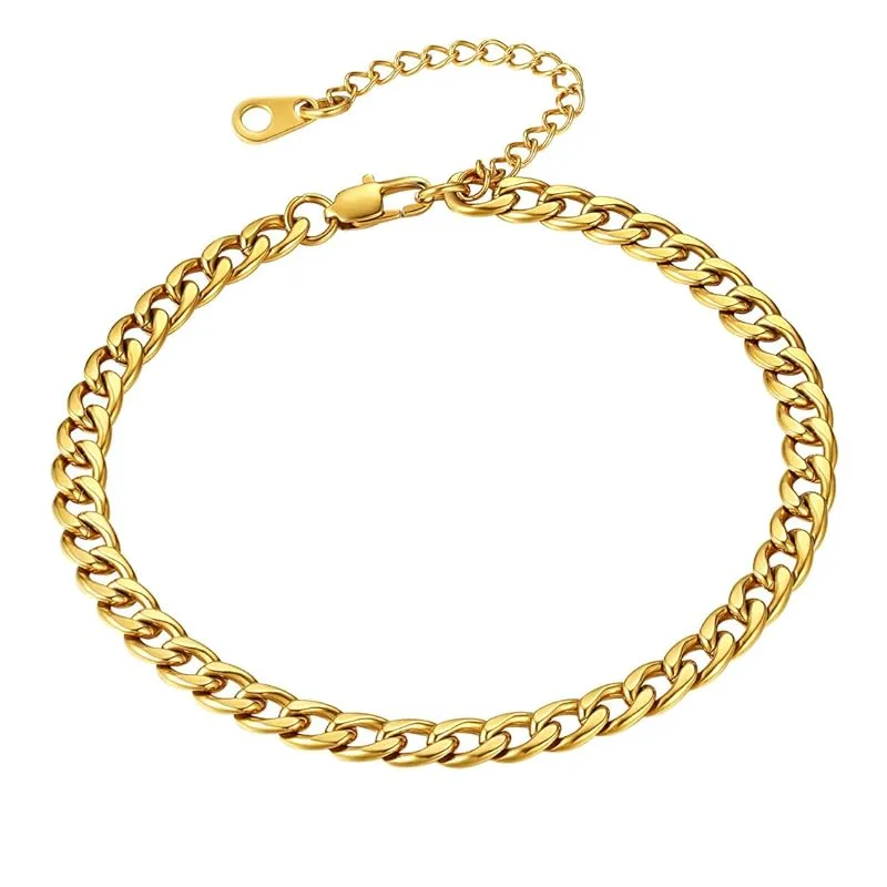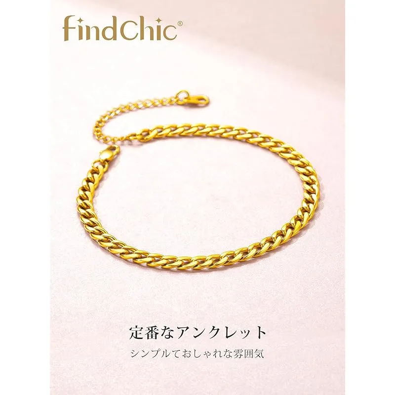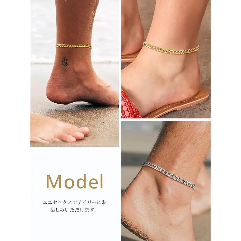 【新品】 アンクレット メンズ レディース つけっぱなし 人気 足首チェーン サージカルステンレス アレルギー対応 ゴールド 18K金メッキ シンプル 太め5mm カップル 喜平チェーン 男性 男の子 夏 海 水泳 アクセサリー