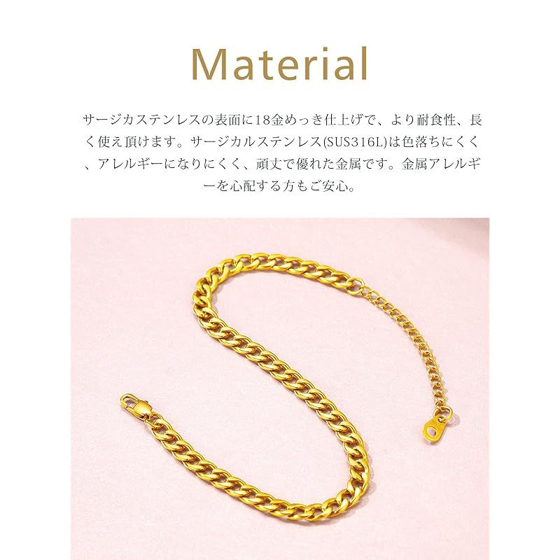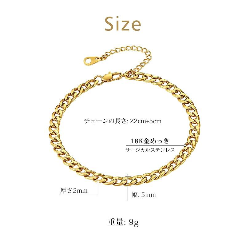 サイズ:全長約22cm+5cmアジャスター、自分の必要に応じていつでもレディースアンクレットのサイズを調整でき、着脱が楽です。 喜平チェーンブレスレットの太さ約5mm。
