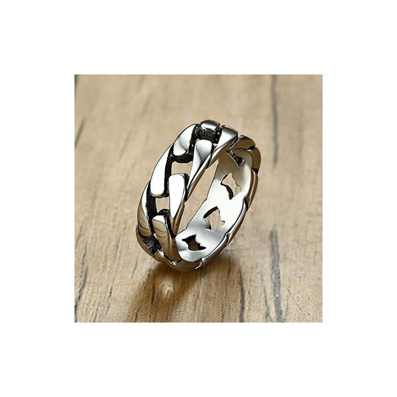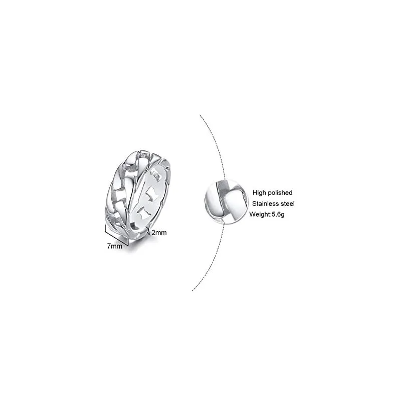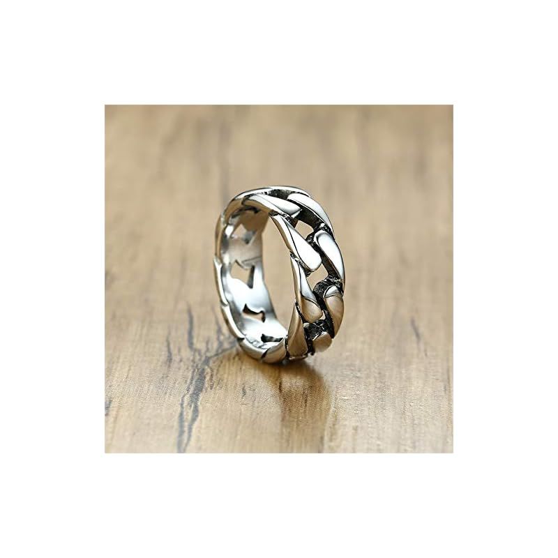 【Rockyu 指輪】キューバチェーンリング メンズ シルバー チタン指輪 おしゃれ おしゃれ 18号 (指周り:59.8mmに合う) 高品質素材 - このリングは耐久性のあるチタンスチールで作られており、長持ちする品質をします。錆びにくく、色褪せしにくい素材です。