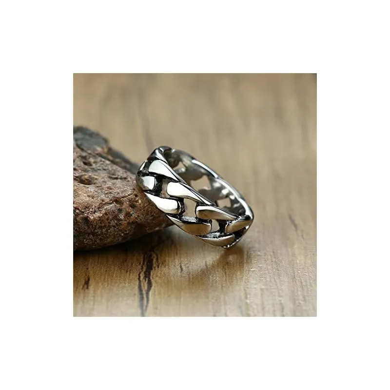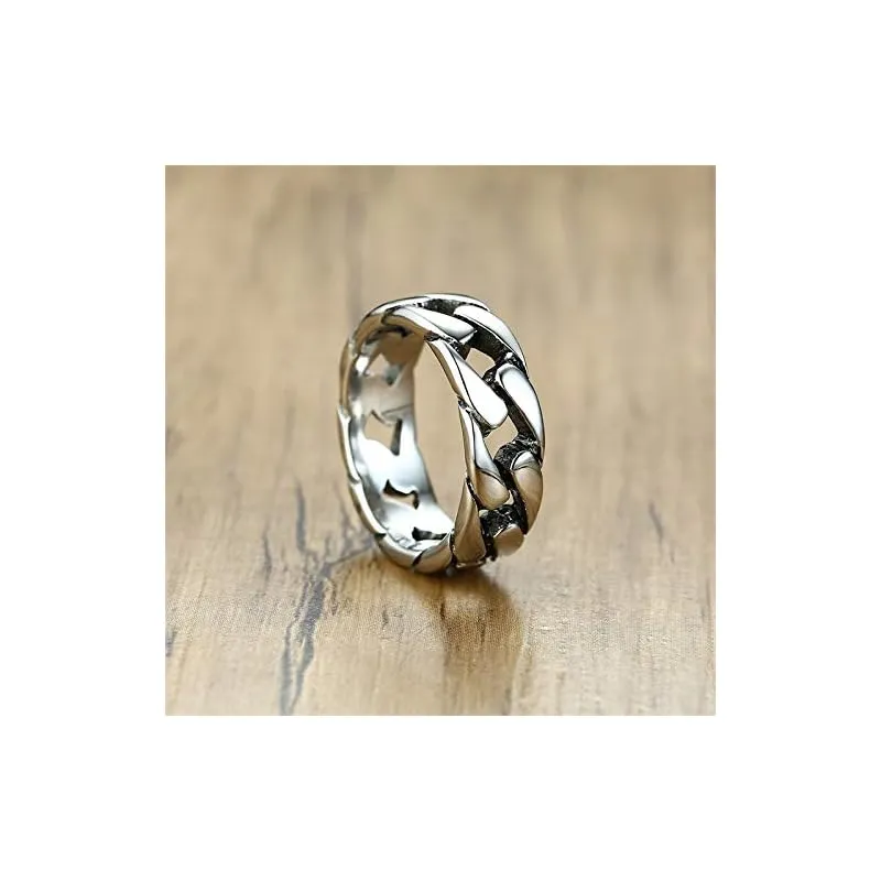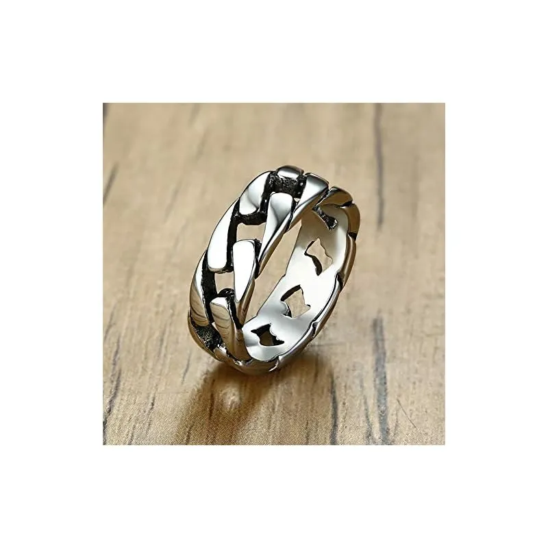 【キューバチェーン指輪】キューバチェーンのデザインが特徴で、ヨーロッパ風のオートバイスタイルにぴったりです。シンプルでありながら個性的なデザインが、どんなファッションにも合わせやすいです。