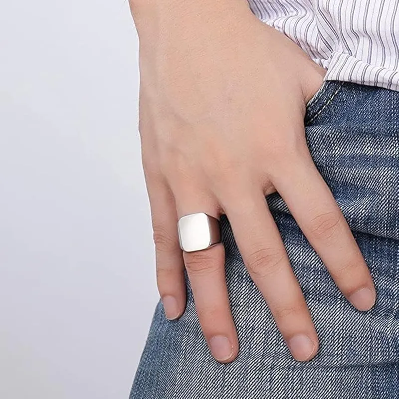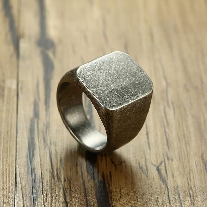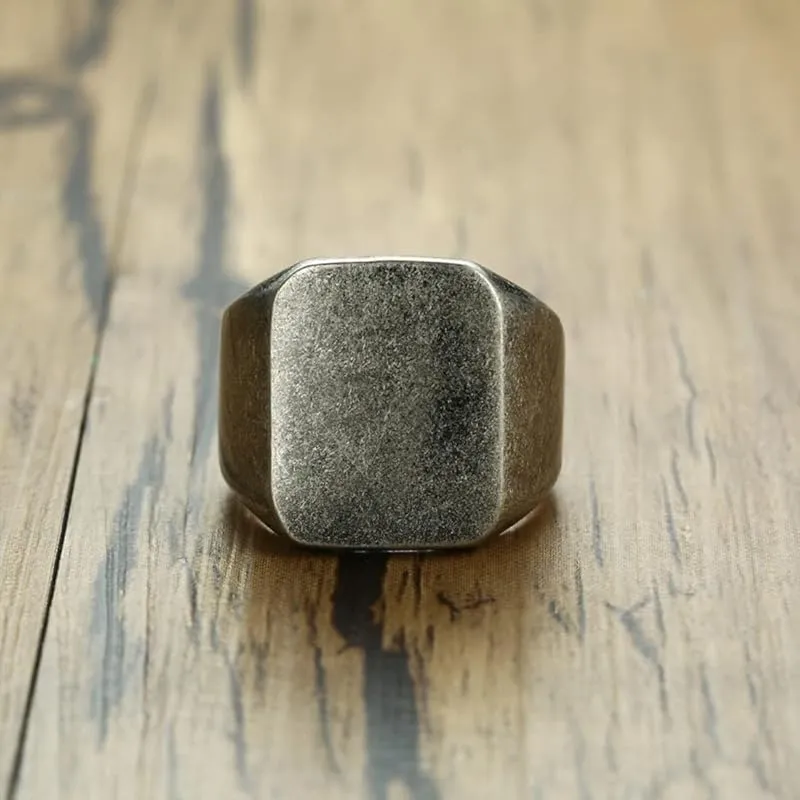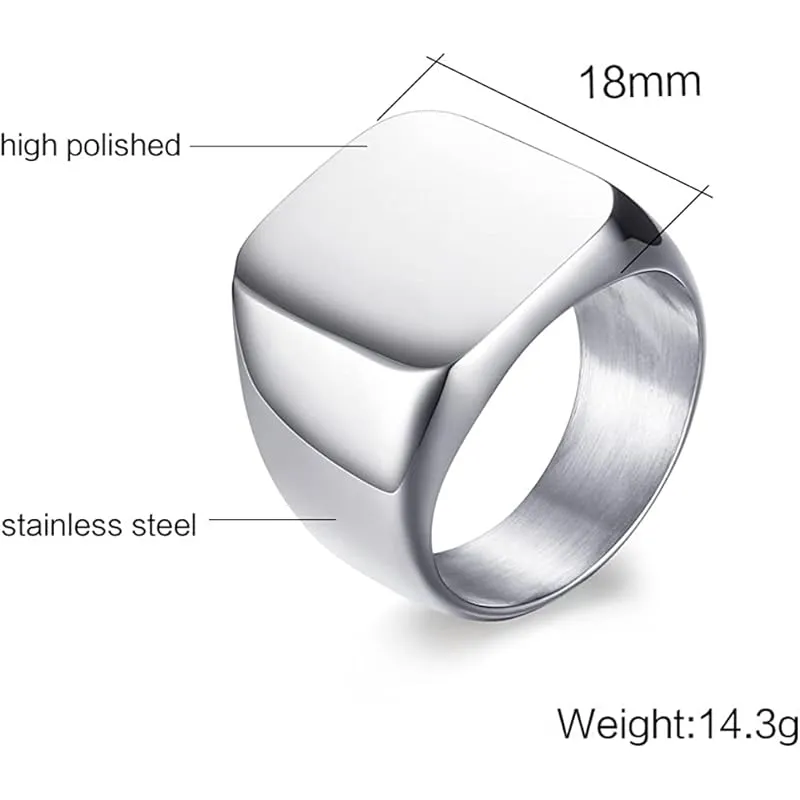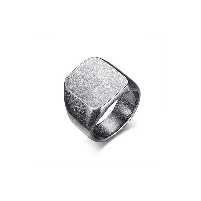 【新品】 ブランド 印台 指輪 メンズ おしゃれ ステンレス リング 幅広指輪 金属アレルギー対応 (印台-灰, 19)