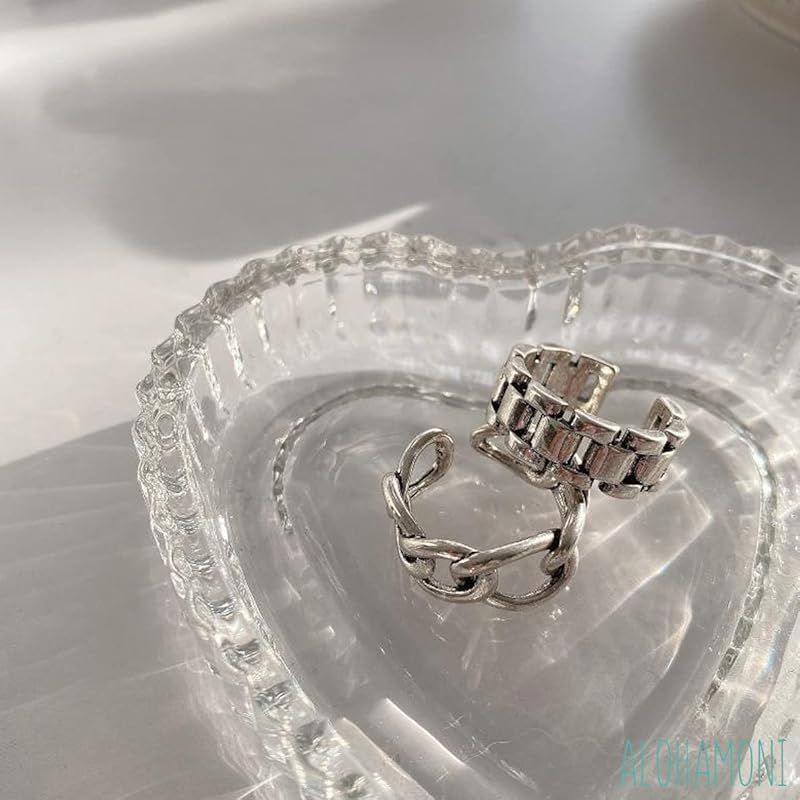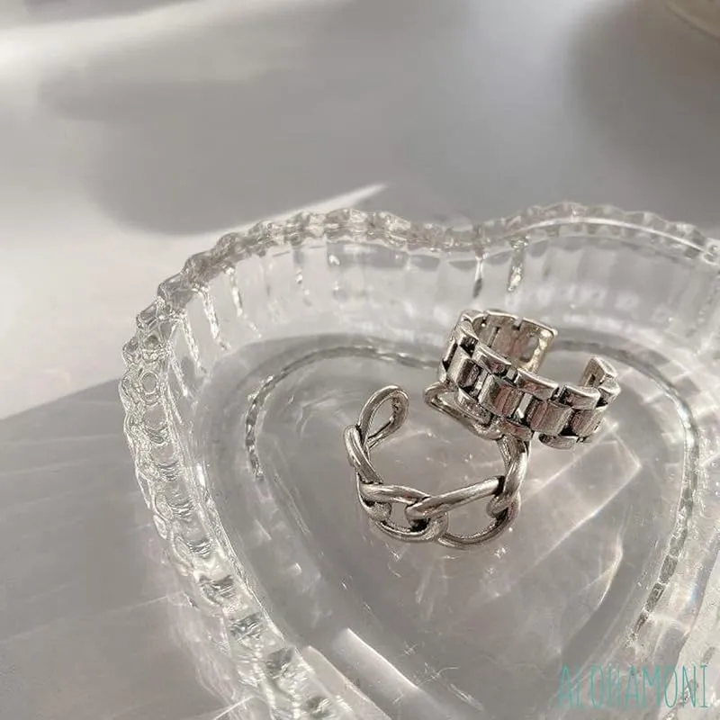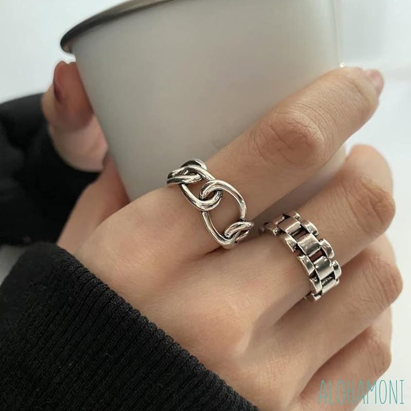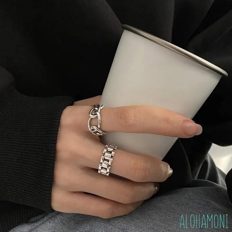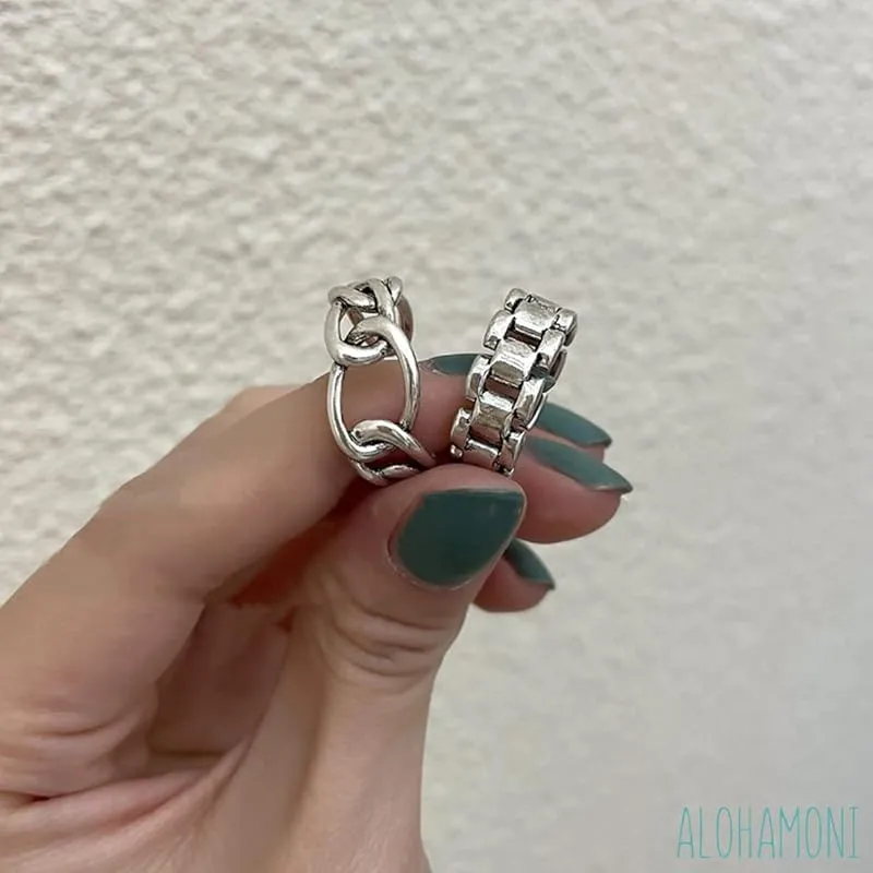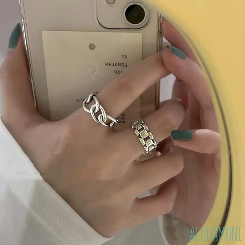 【新品】 アロハモニ ヴィンテージ ブロックリング & アンカーチェーンリング シルバー925 指輪 喜平 チェーン フリーサイズ レディース 韓国 オルチャン
