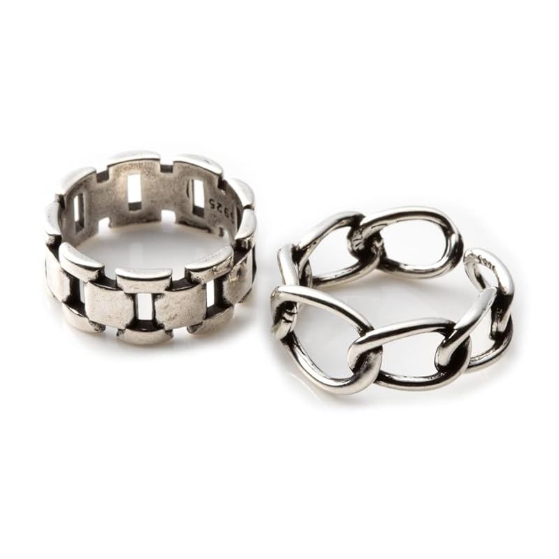 ■ヴィンテージ感がオシャレな、ブロックリング & アンカーチェーンリングのシルバーリング2点セットです♪