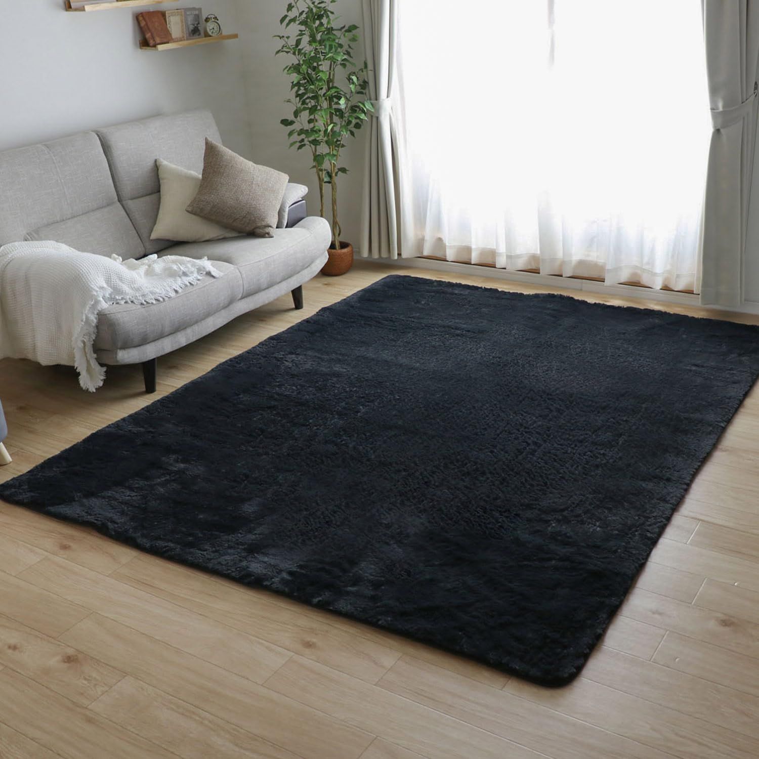 フリーリー シャギーラグ ラグ カーペット 200×300cm 約4畳 防ダニ 抗菌 防臭 厚手 滑り止め付 ホットカーペット対応 絨毯 無地・ブラック