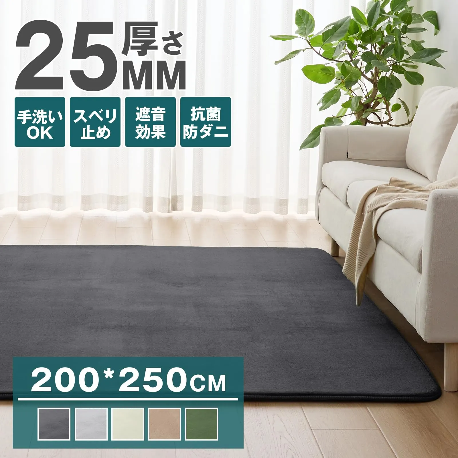色: ブラック01_サイズ: 200×250cm×2.5cm