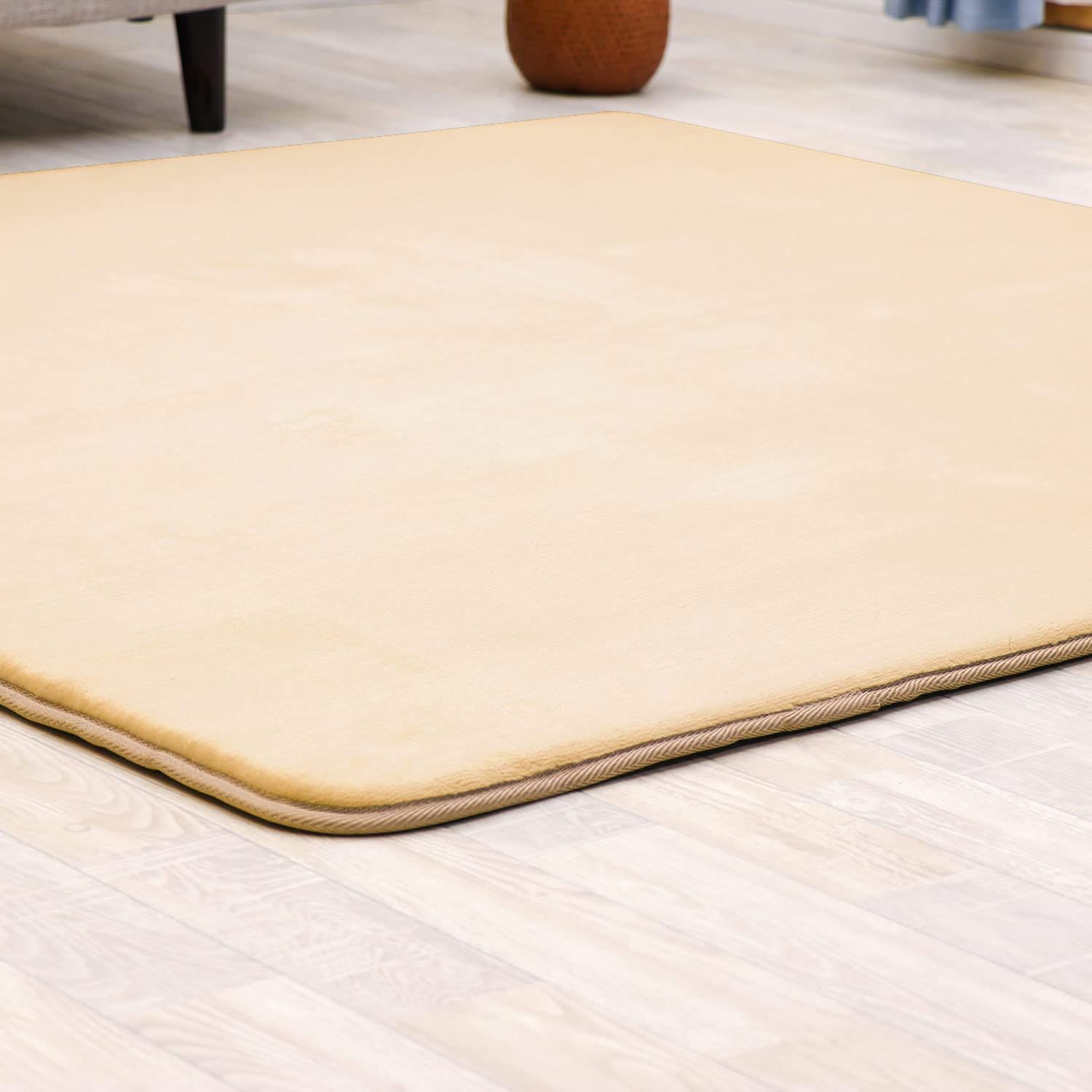 フリーリー ラグ カーペット 高反発ラグ 極厚25mm 200×300cm 抗菌・防ダニ加工 厚手 ラグマット オールシーズン 滑り止め付 マイクロファイバー サイズ (XL無地・ベージュ)