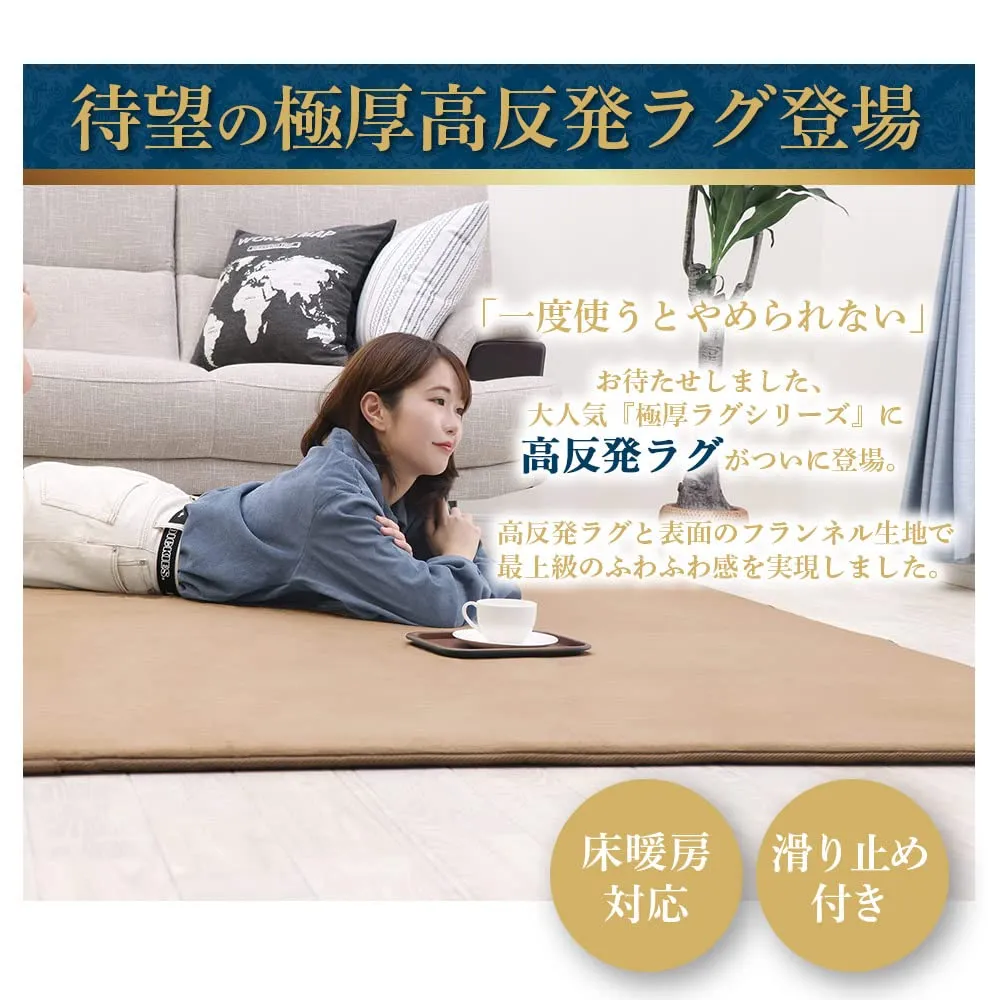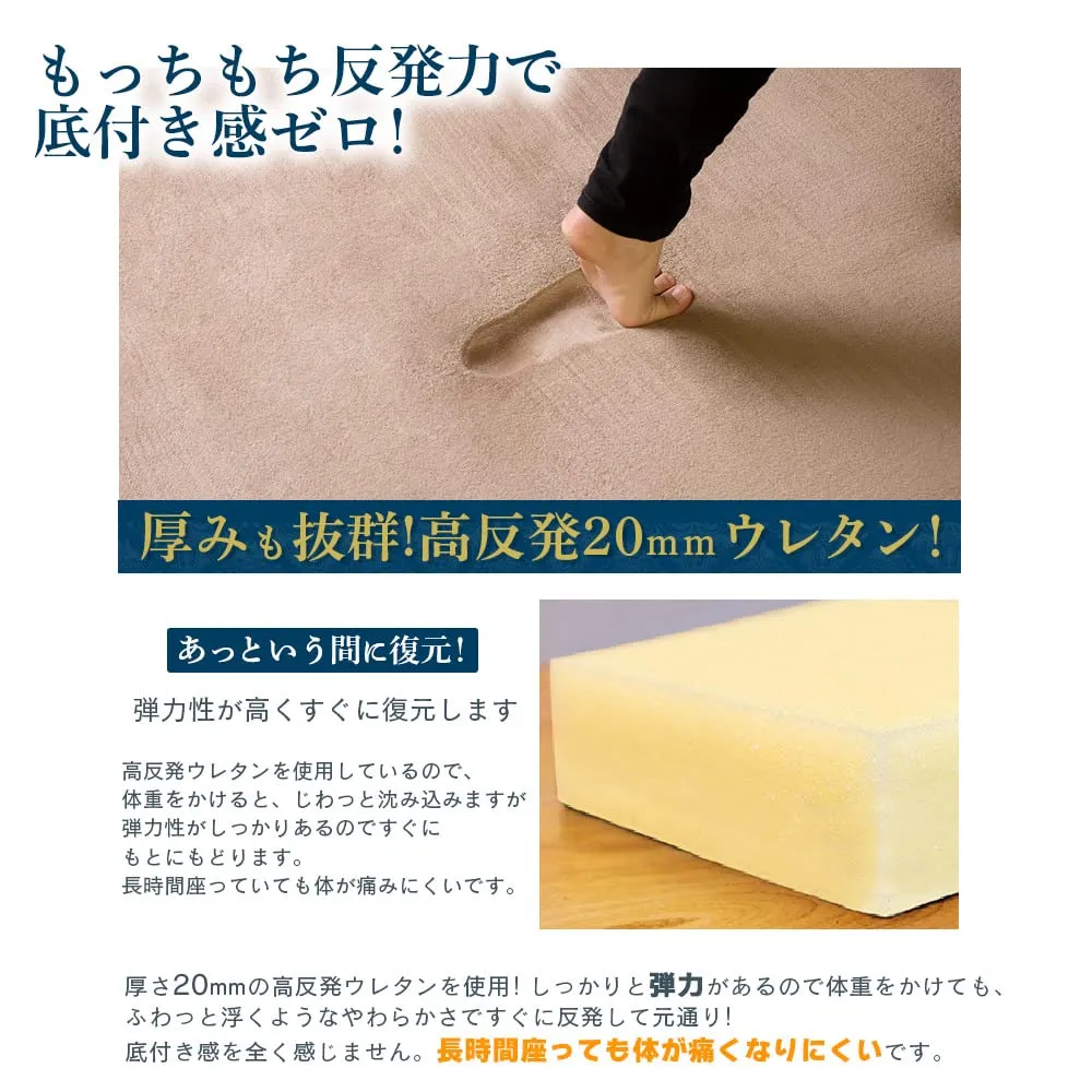 【クッション性抜群】厚さ約20mmの高密度高反発ウレタンを使用し、ラグの厚さが約25mmになります。