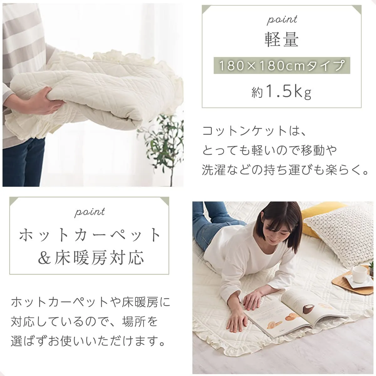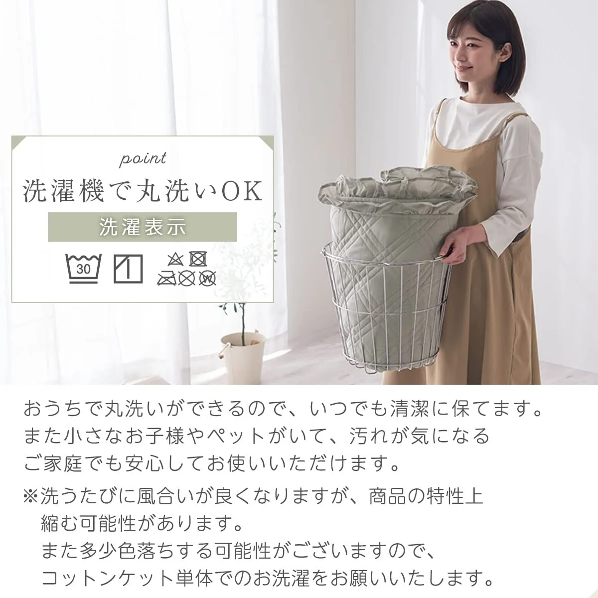 機能:洗濯機使用可、床暖房・ホットカーペット対応 ※床暖房・ホットカーペットの上で本製品をご使用の際は、床暖房・ホットカーペットに関する「取り扱い上の注意」をご確認の上ご使用ください。