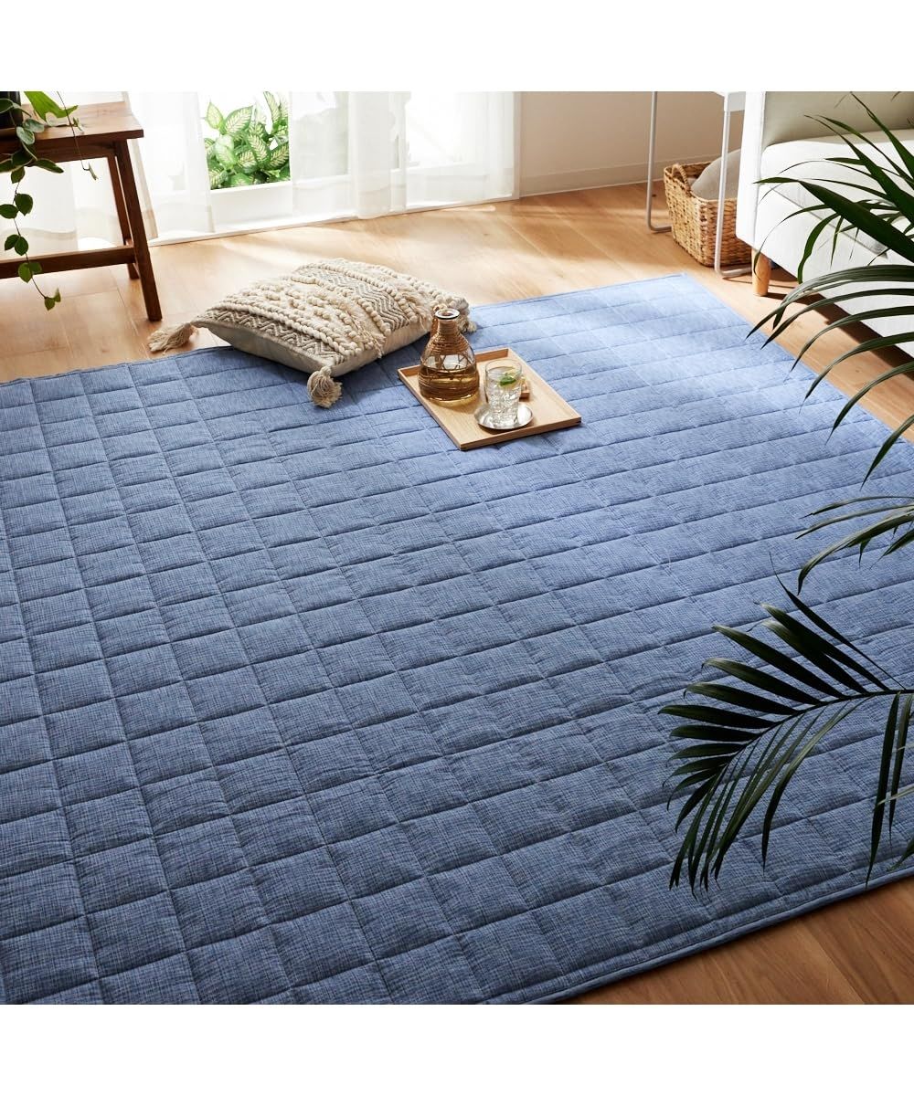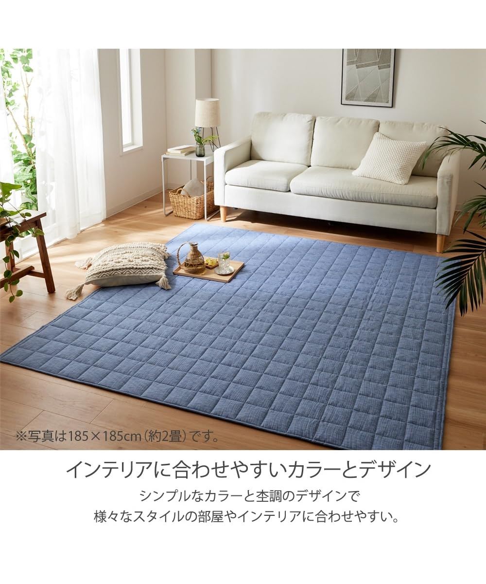 [ニッセン] ラグ 洗えるキルト|しじら織・綿100%生地使用 グレイッシュブルー 約185×280(5mm)