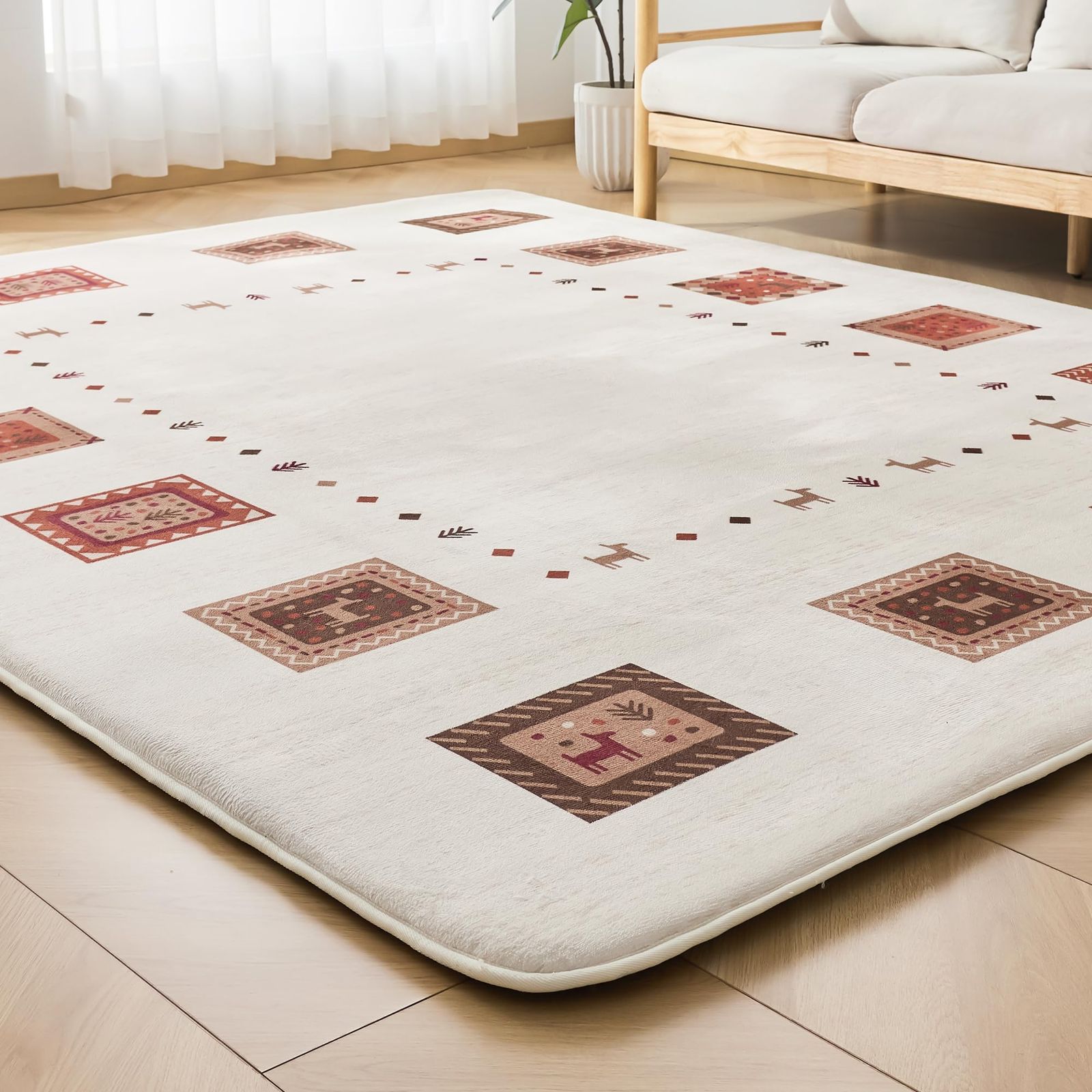 HARUMIN 極厚30mm カーペット ラグ 厚手 約3畳 民族風 ラグマット 絨毯 無地 防音 抗菌 防臭 防ダニ 低ホルム 北欧 おしゃれ 滑り止め付き 床暖房ホットカーペット対応 こたつ敷きマット 高反発 ゆか保護 200×250cm ギャッベ風ベージュ