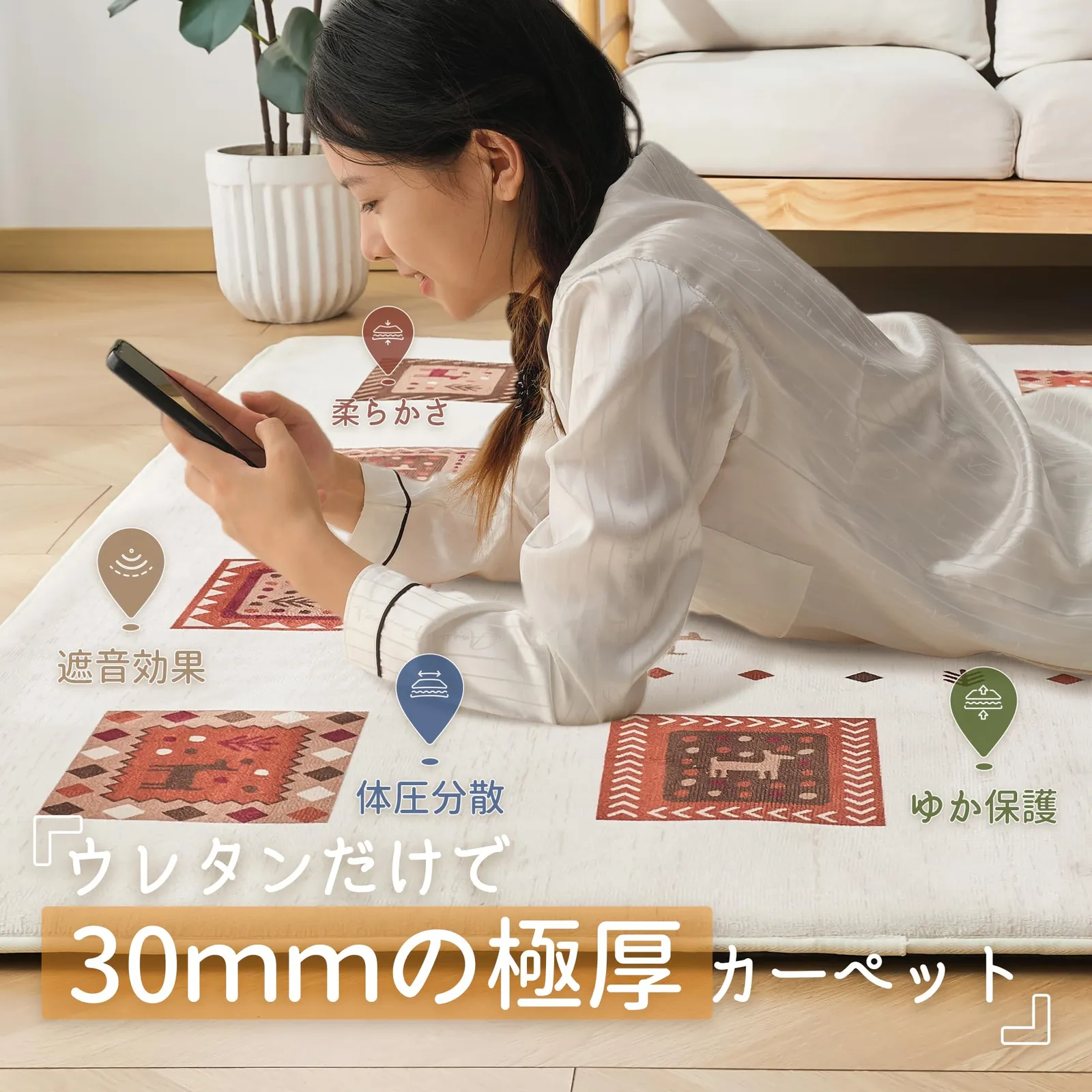 【極厚30mm】30mmの極厚で柔らかいカーペットは、床の存在を感じることなく、どんな姿勢でカーペットの上にいても、長時間座っていても、痛みを感じない!