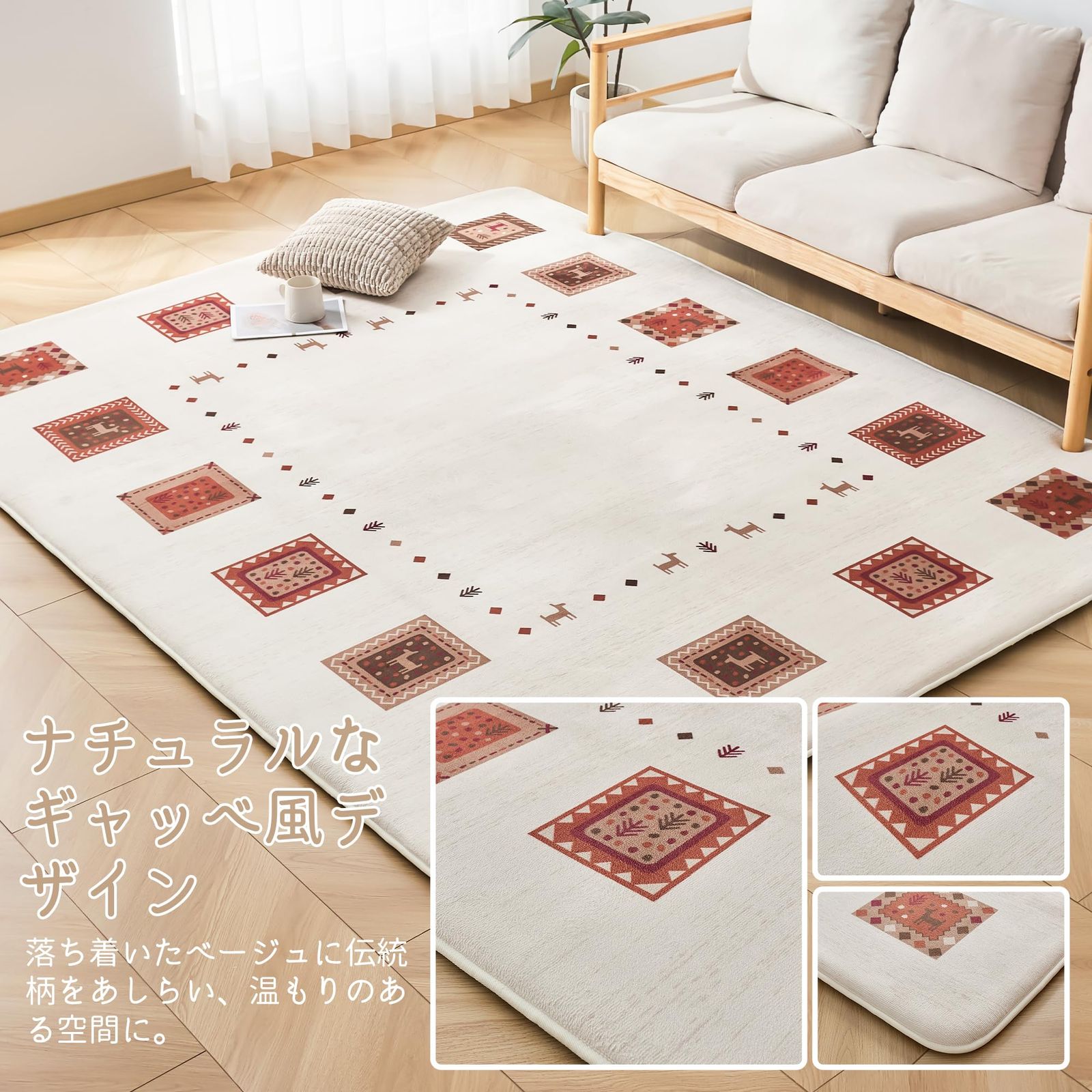 色: ギャッベ風ベージュ_サイズ: 200×250cm