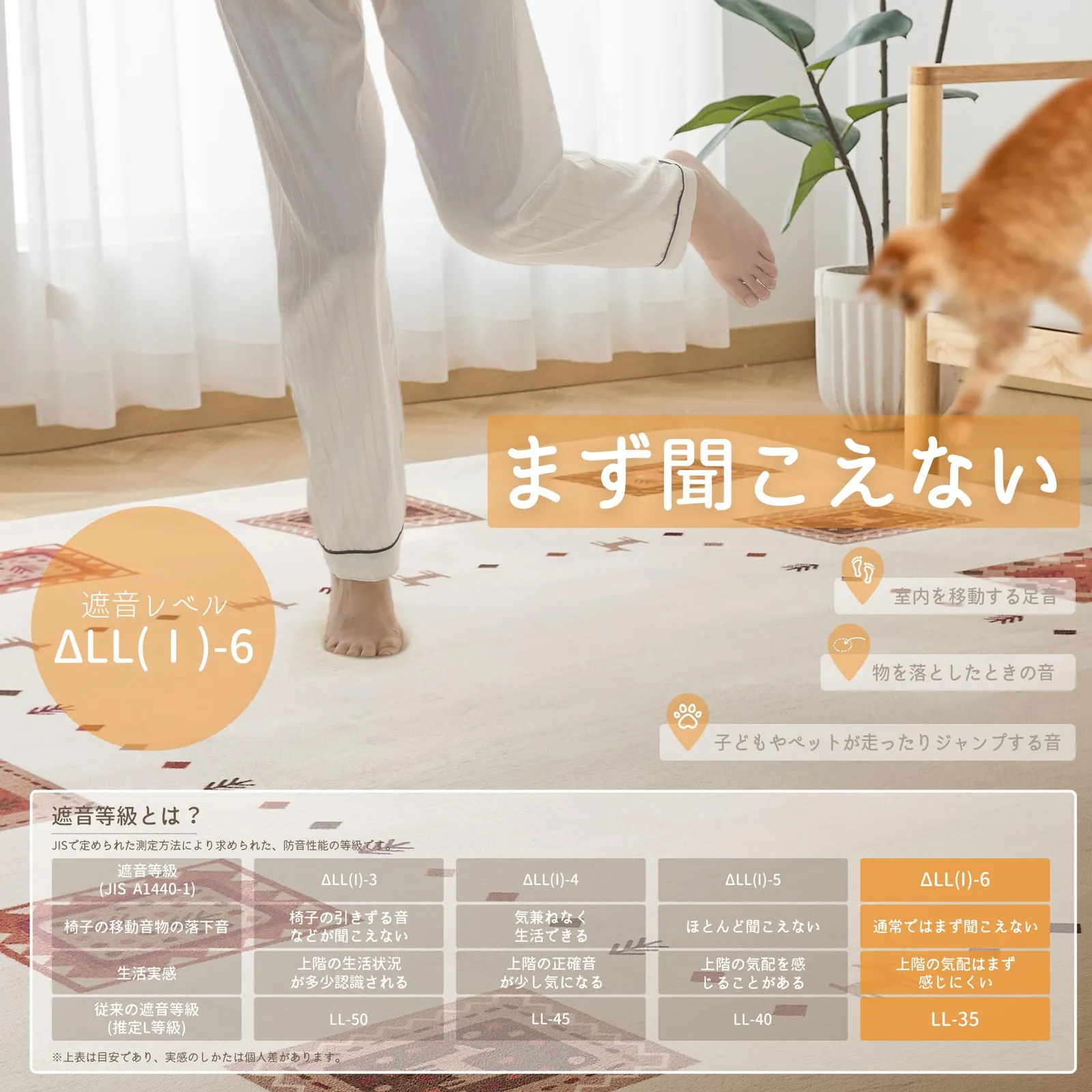 【遮音レベルΔLL(Ⅰ)-6】優れた遮音性能を持つカーペットで、子供やペットがカーペット上で走り跳ねても、ほとんどの音を軽減し、静かでリラックスした生活環境を提供します!