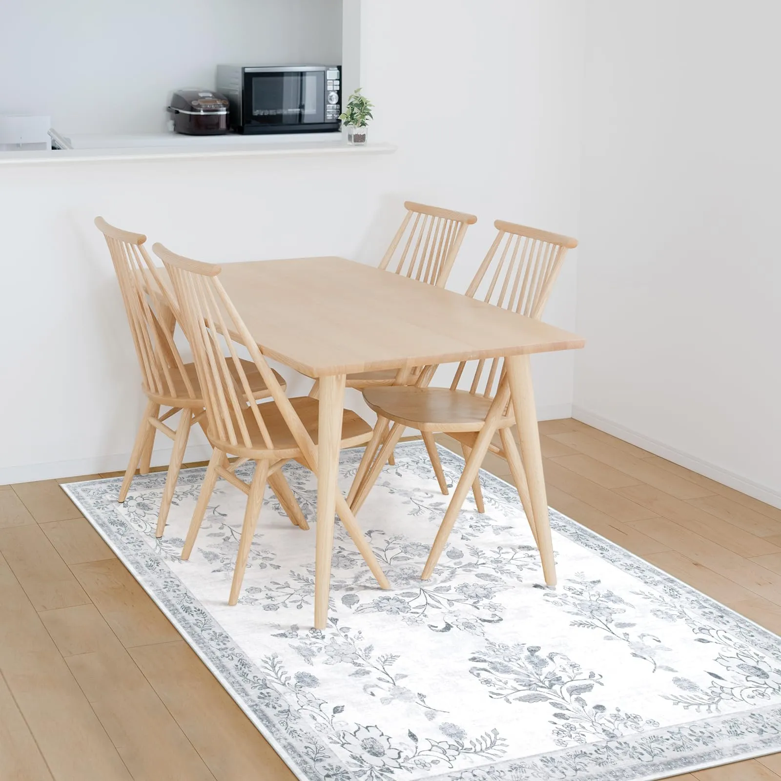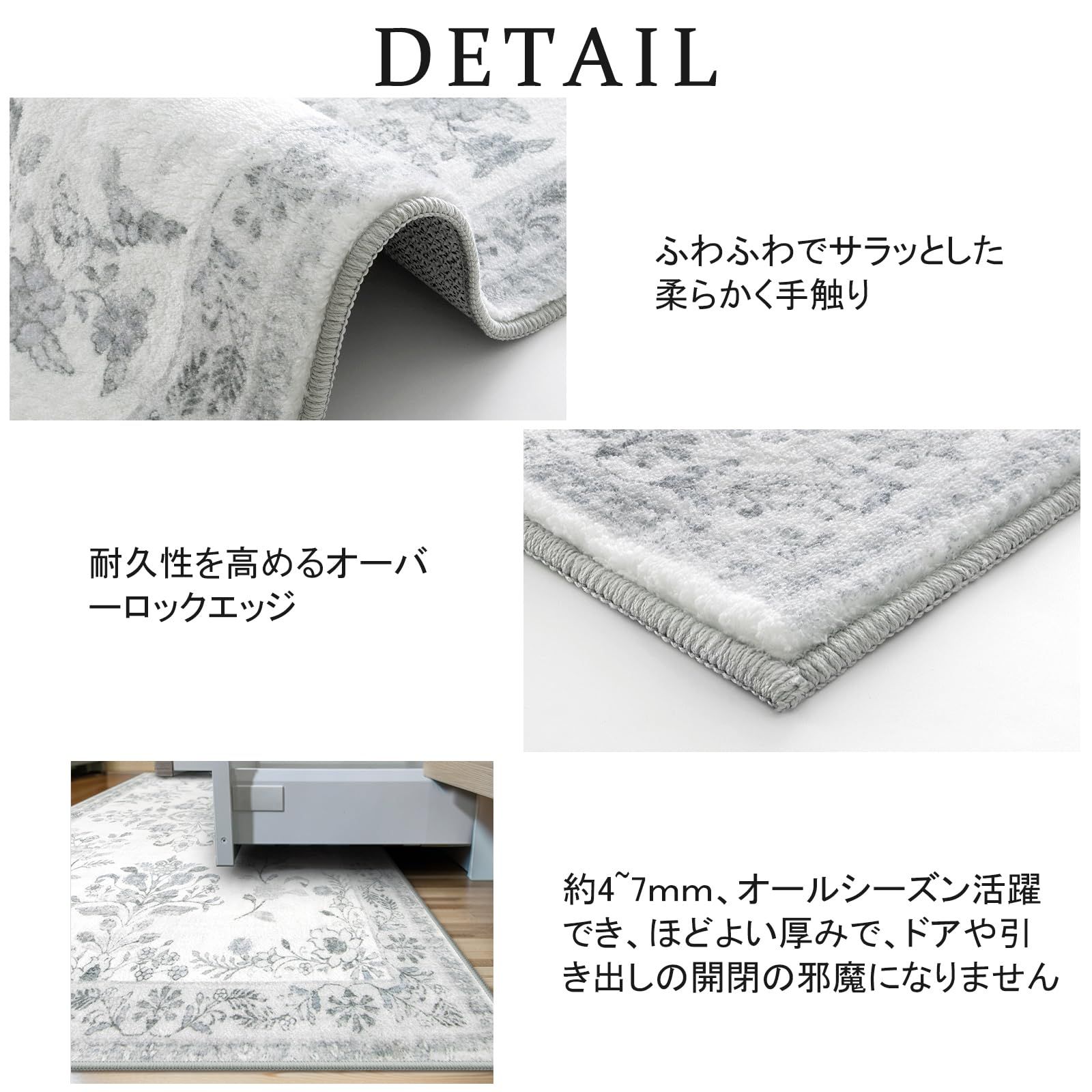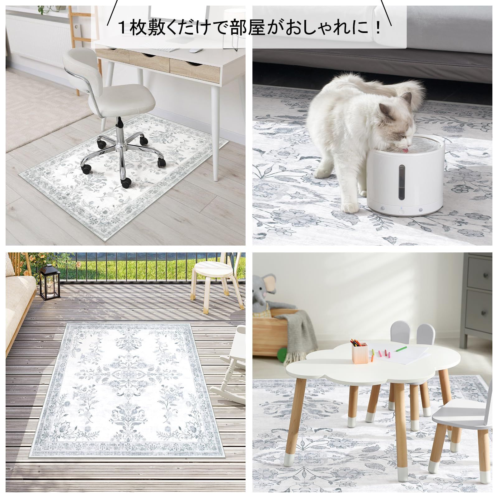 HAOCOO カーペット 洗える 140х200cm ラグ 約1.5畳 オールシーズン適用 ペルシャ風 じゅうたん 滑り止め 低反発 防音 寝室 リビング ラグマット 抗菌防臭 耐磨耗性 軽量 花柄 ライトグレー