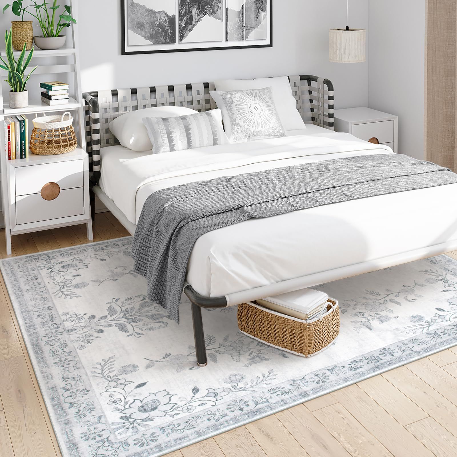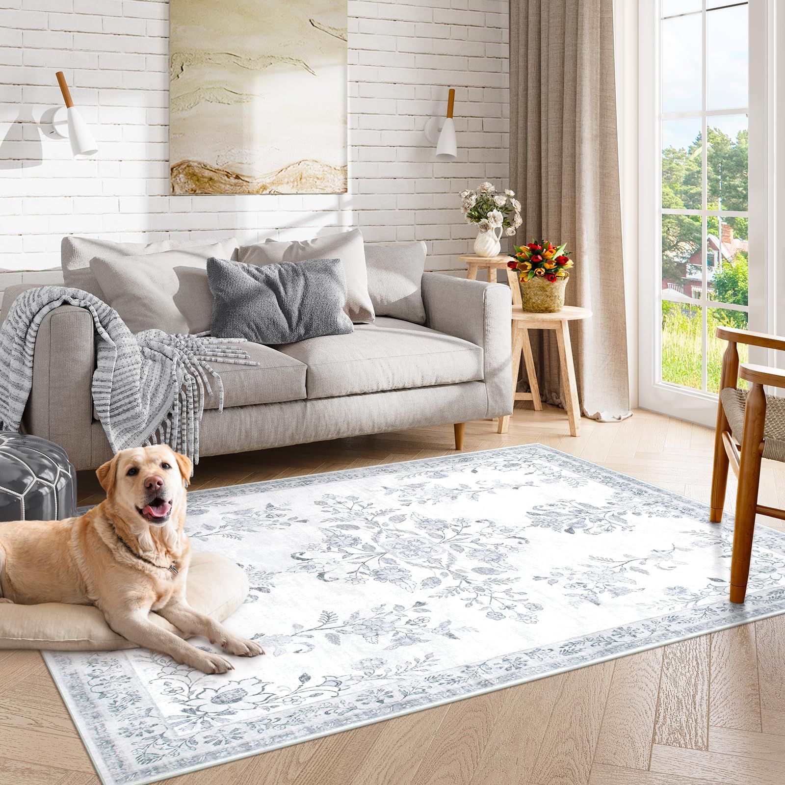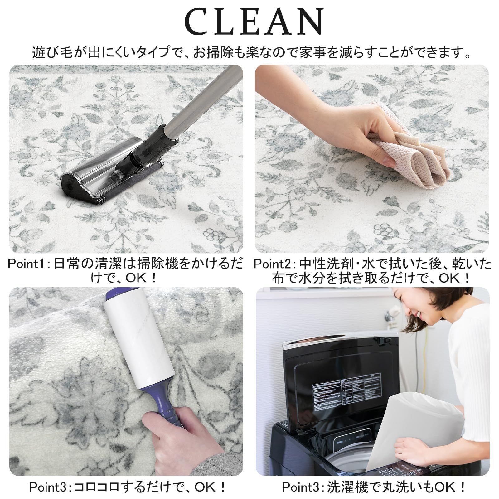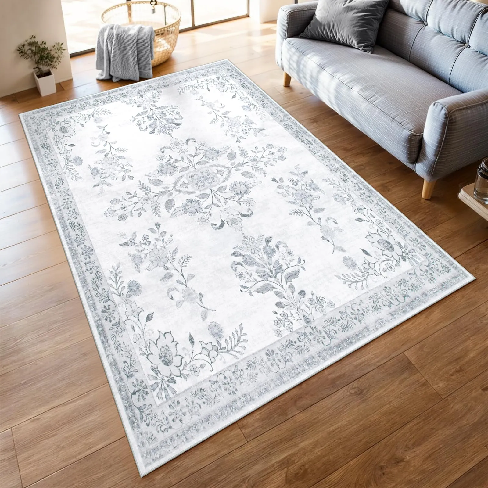 HAOCOO カーペット 洗える 140х200cm ラグ 約1.5畳 オールシーズン適用 ペルシャ風 じゅうたん 滑り止め 低反発 防音 寝室 リビング ラグマット 抗菌防臭 耐磨耗性 軽量 花柄 ライトグレー