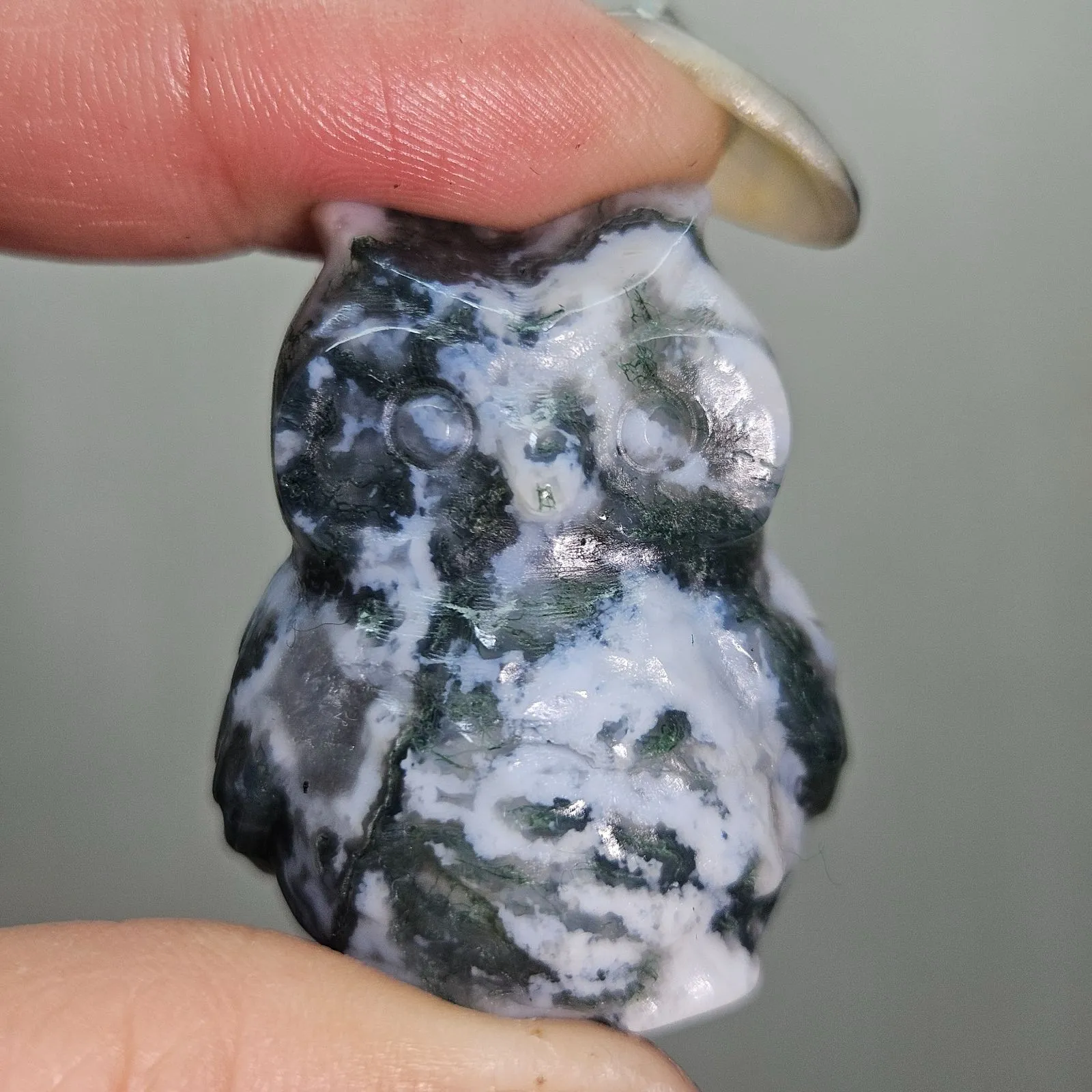 モスアゲート ふくろう カービング