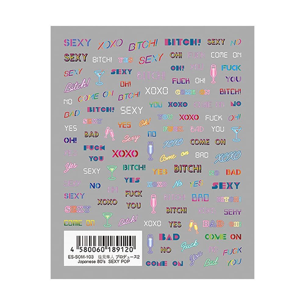 80年代シティポップ風のフォントをカラフルで、アダルトワードなデザインに可愛くてアガる、セクシーでポップな指先をお楽しみください