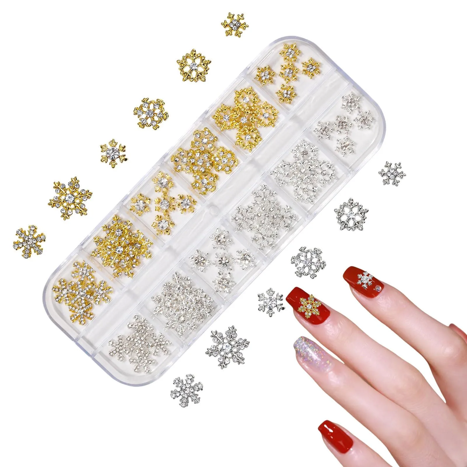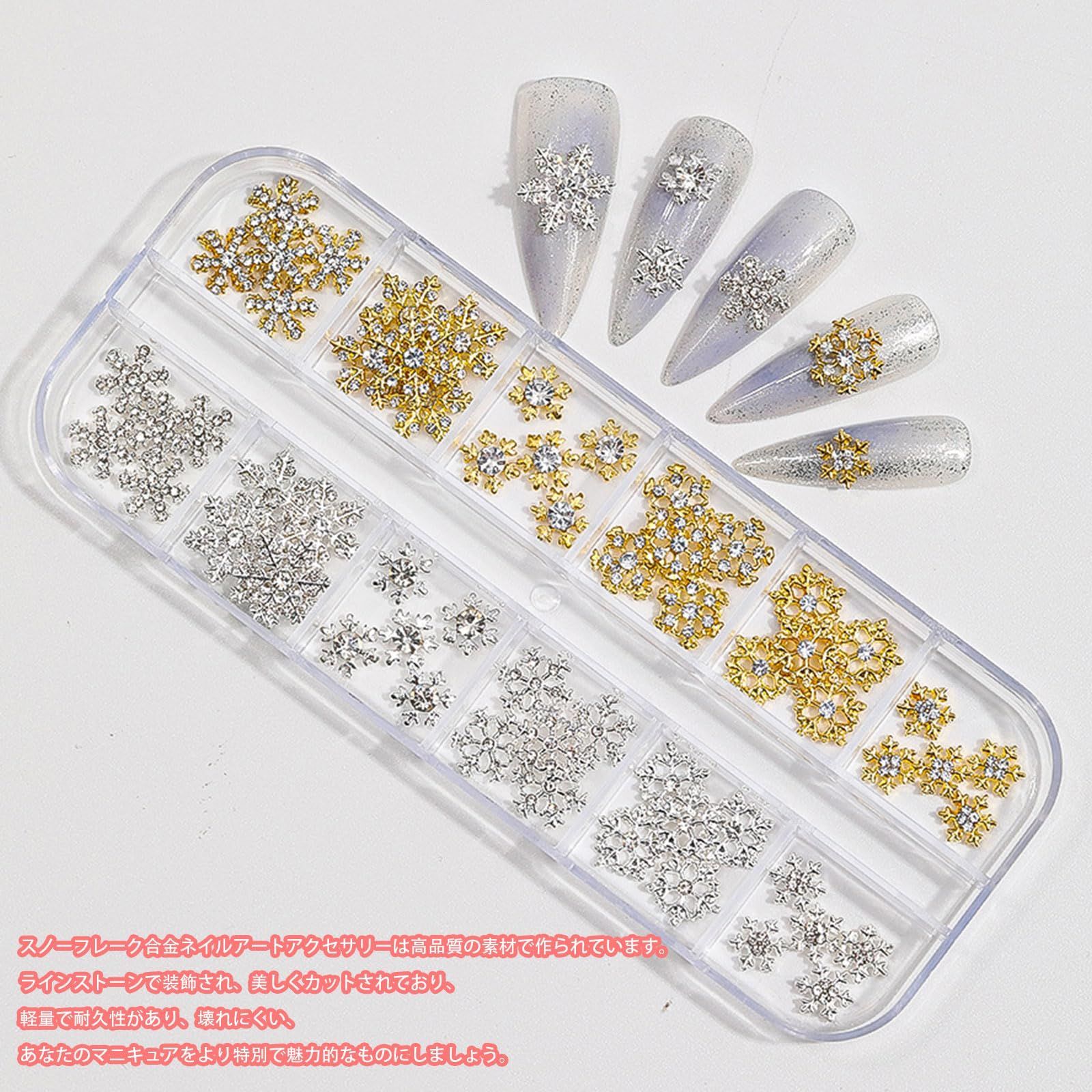 ネイルパーツ 雪の結晶 1ケース入り 3D 立体 可愛い おしゃれ 冬 雪 スノー クリスマス ネイルパーツ シルバー ゴールド ネイルスタッズ メタル パーツ ネイルアート デコパーツ ジュエリーパーツ アクセサリー DIY 手芸素材 ハンドメイド