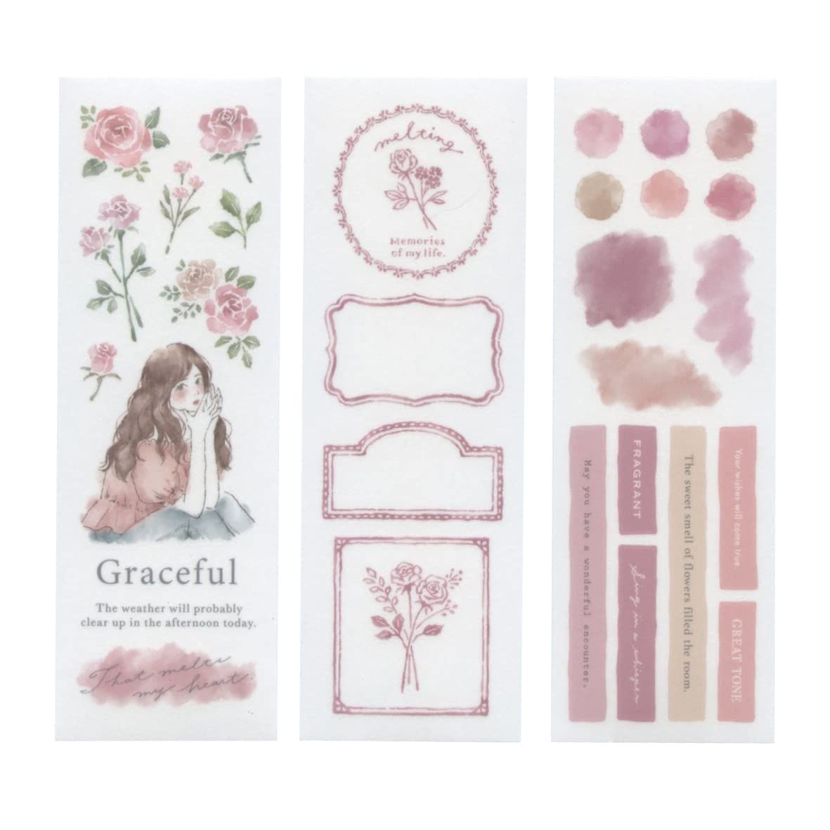 ・トレーシングペーパー素材ならではの透け感と軽やかさが、手帳やノート、ギフトラッピングにぴったり。 ・3柄×各2枚(計6枚)入りで、使い勝手も抜群。