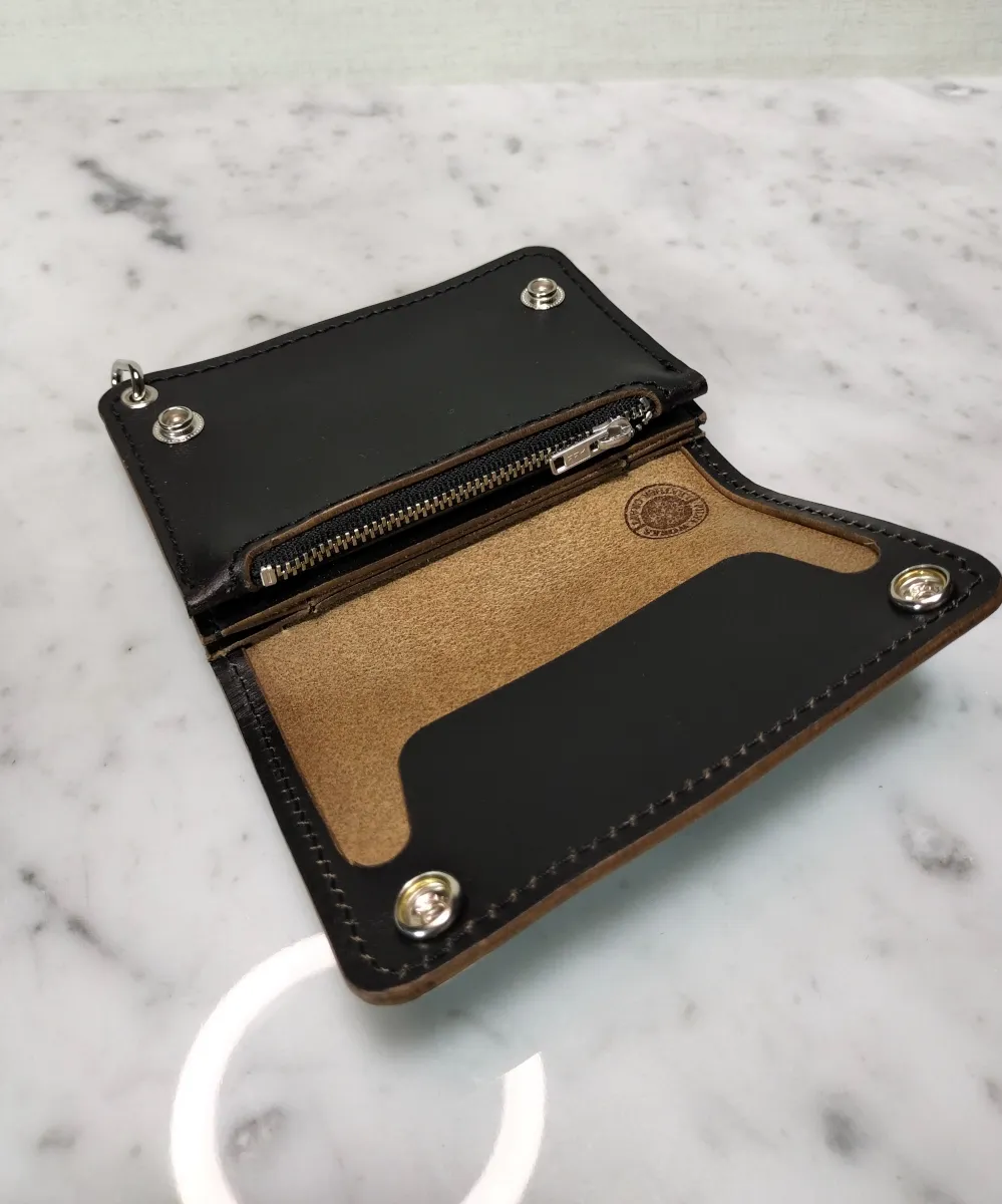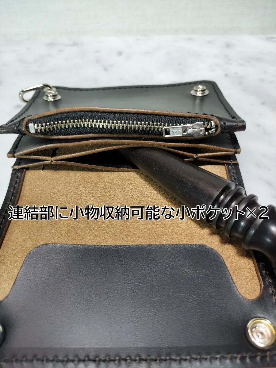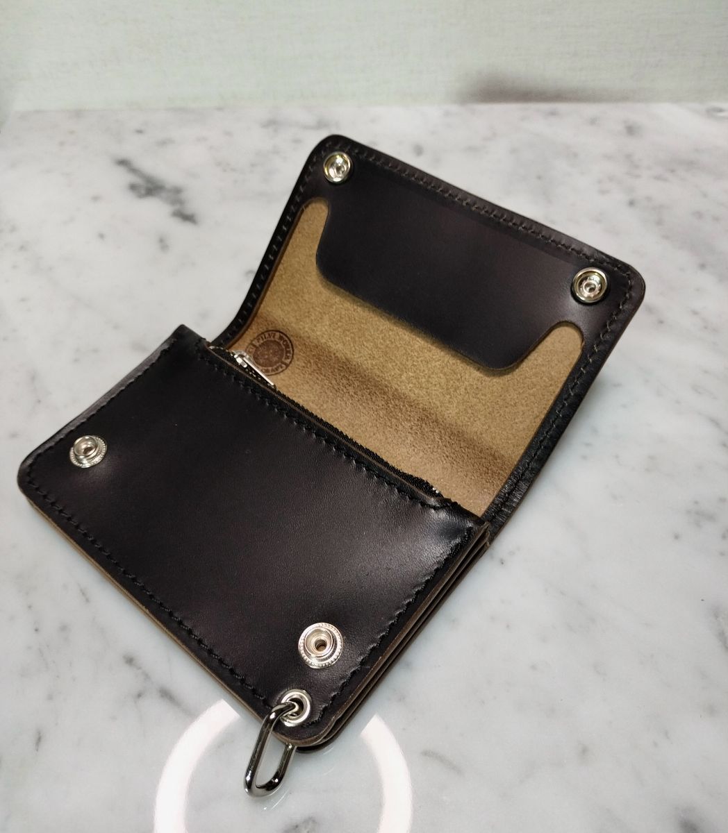 ホースバットを贅沢に使用したハンドメイドトラッカーウォレットになります。